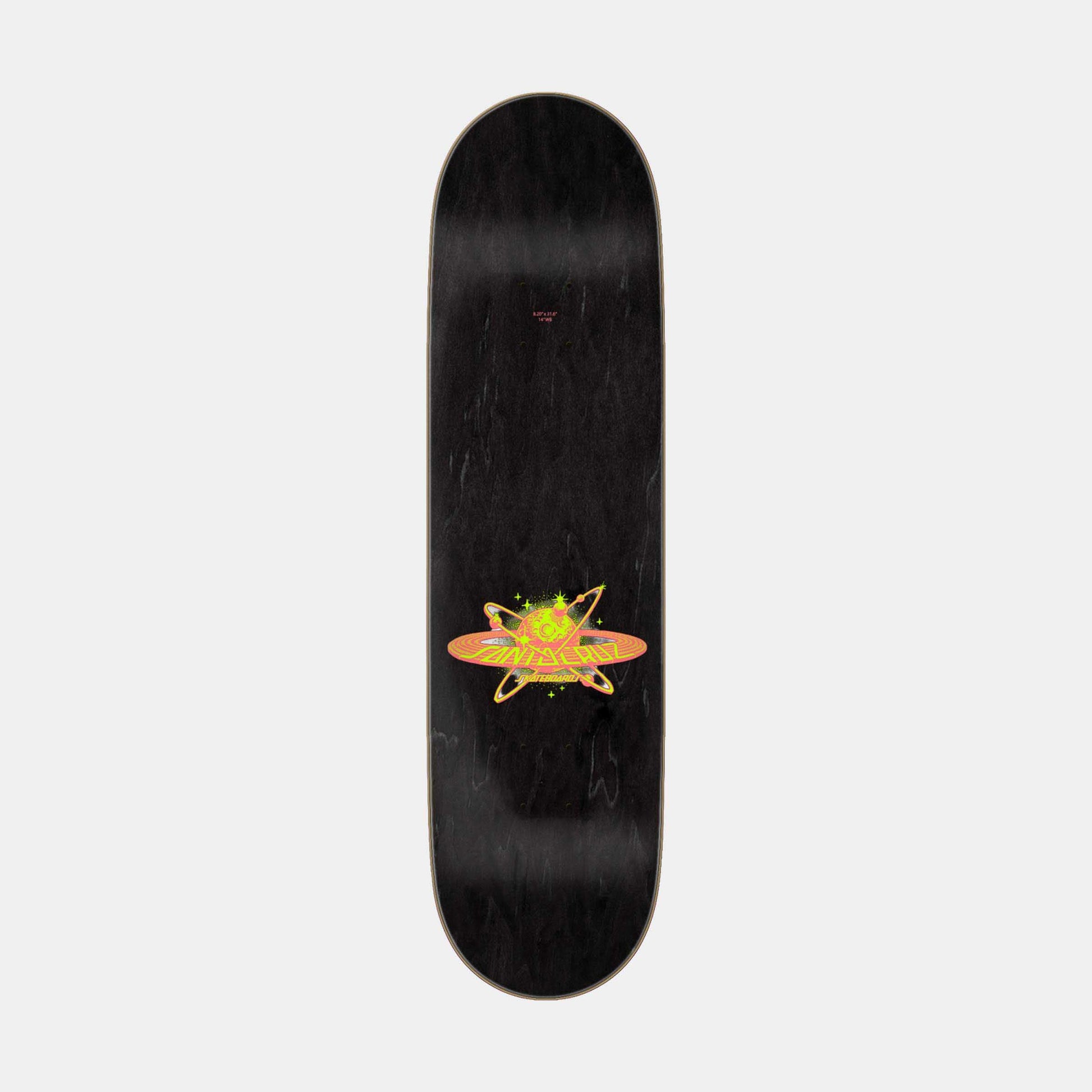 The Santa Cruz Skateboards Asta Cosmic Twin Pro 7 ply deck features Tom's custom 8.2in symmetrical twin shape, 14in wheelbase, two-way black and neon Asta Cosmic Twin artwork and neon top graphic on black deck top.