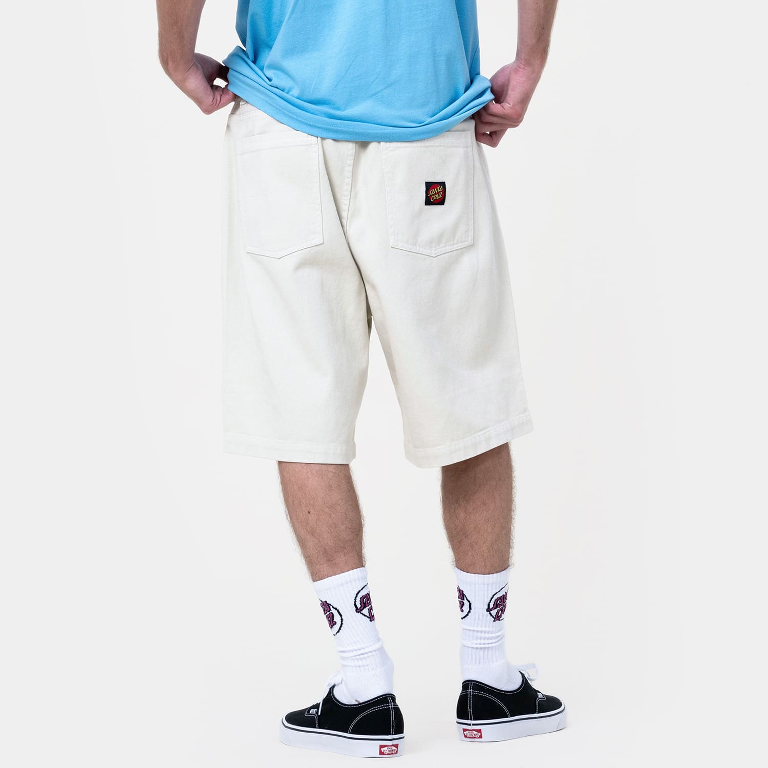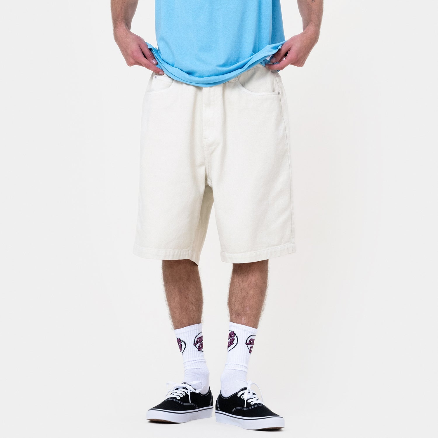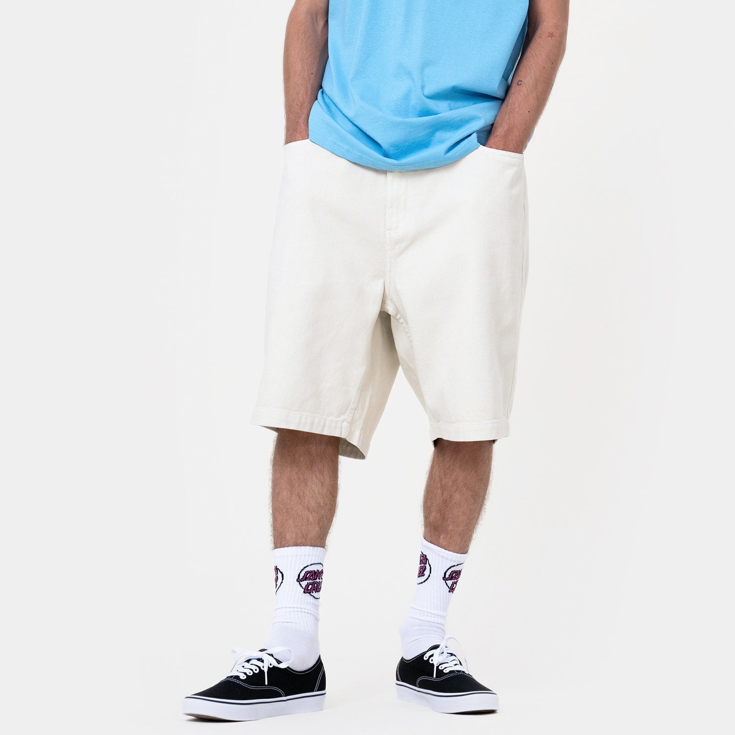Blond Wood: 100% cotton twill, garment dyed, Black Acid Wash/Stone Wash: 94% cotton, 6% polyester, 13.5oz denim, baggy fit shorts with front pockets, back pockets and woven label branding