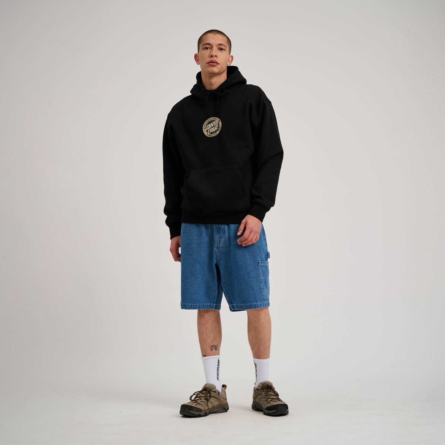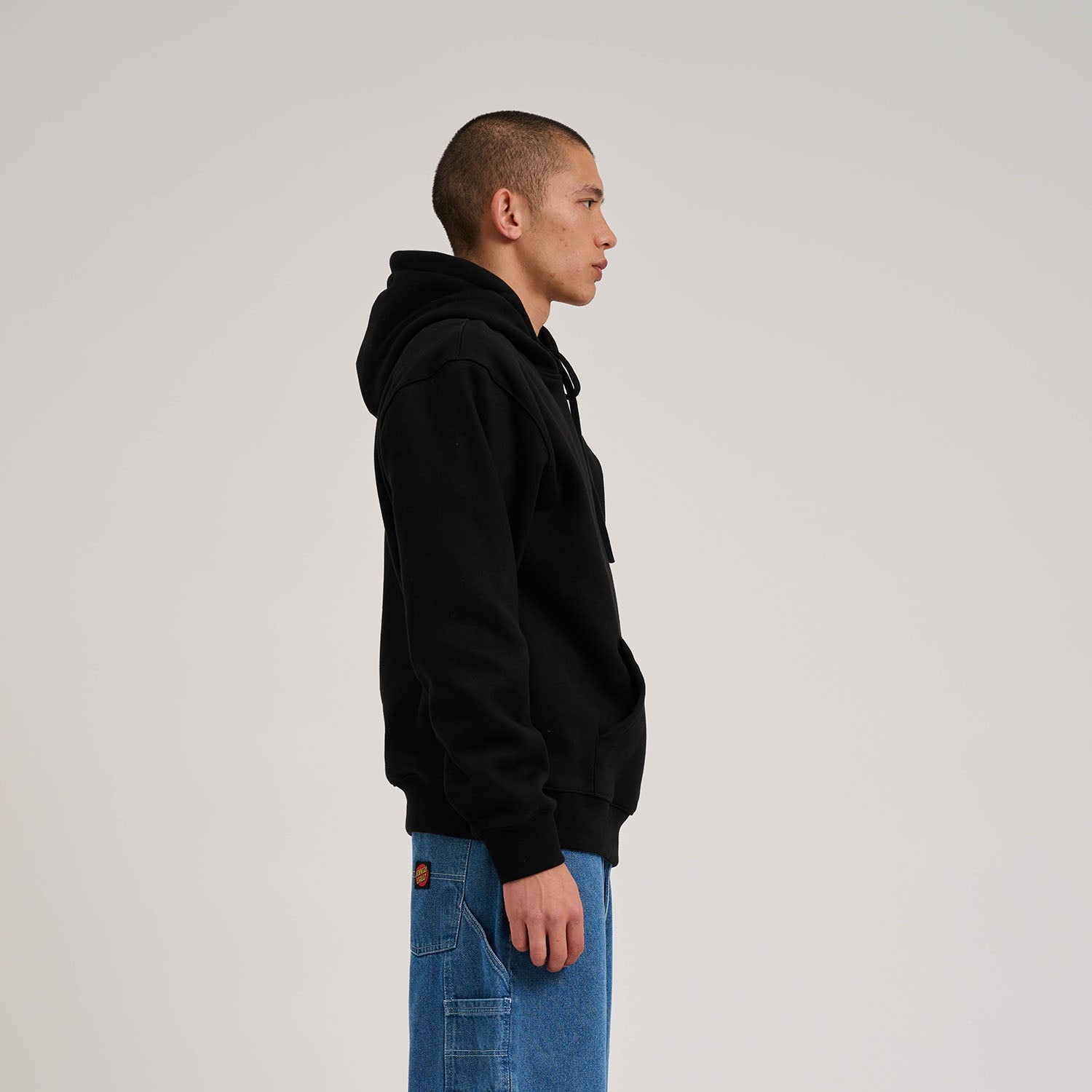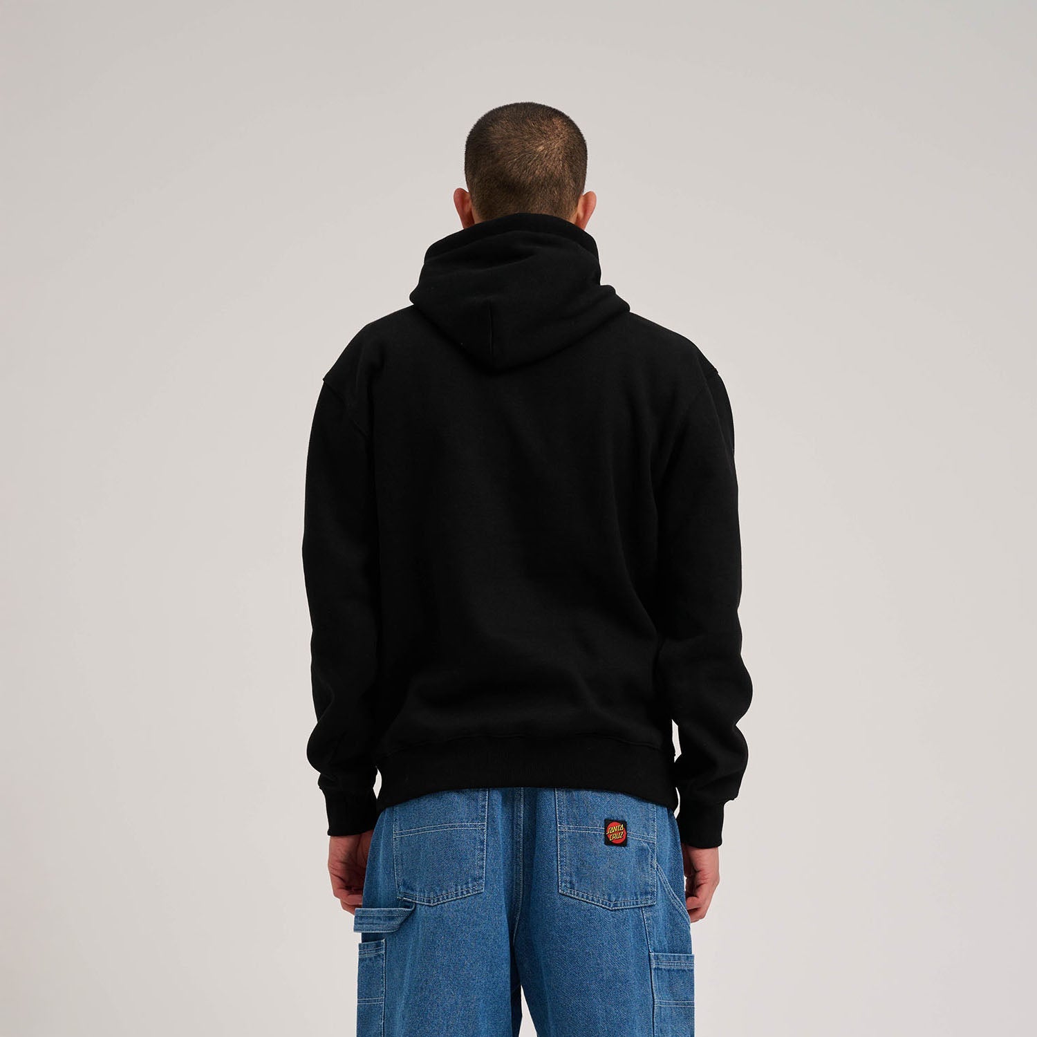 80% cotton, 20% polyester, 420gsm heavyweight brushed fleece, loose fit, hooded sweatshirt with pouch pocket and chest print