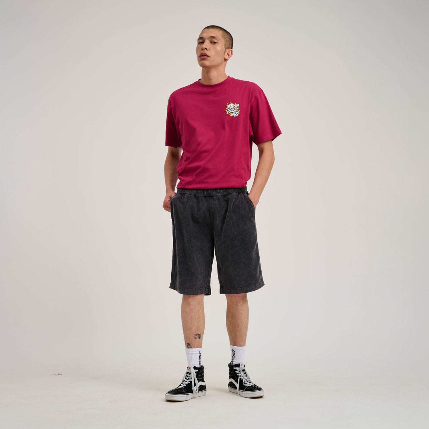 100% cotton corduroy, enzyme washed, relaxed fit, shorts with elasticated waist, side entry pockets, back pocket and woven label branding