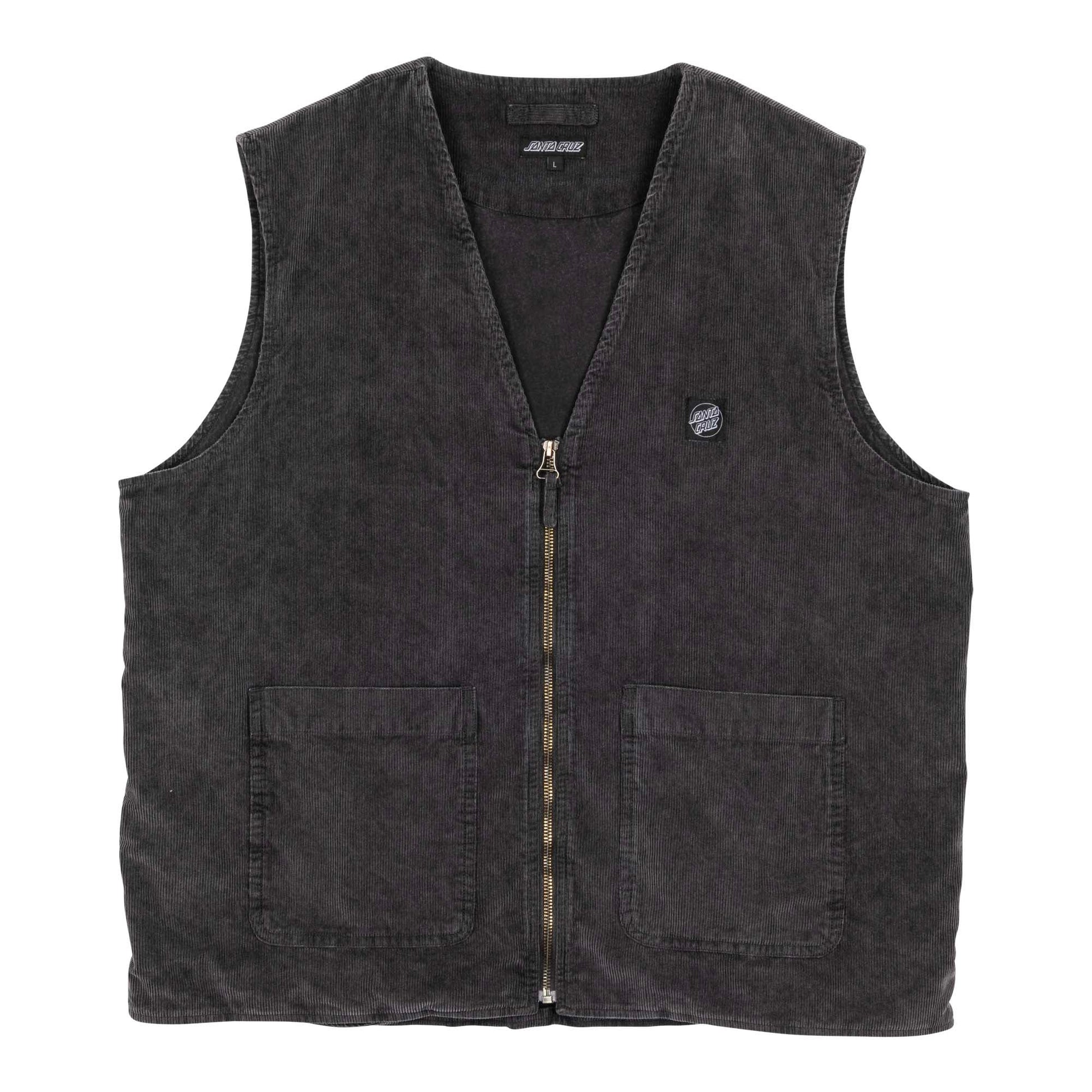 100% cotton corduroy, enzyme washed, regular fit, vest with twin pouch pockets and woven label branding