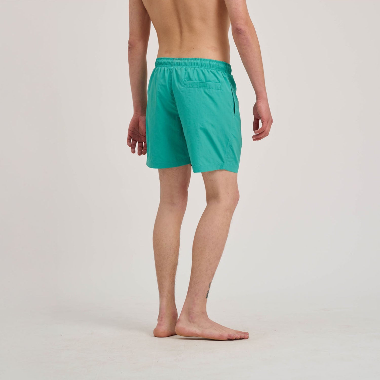 100% nylon, elasticated waist swimshort with 17" outseam, side pockets and back pocket, all over Aqua React print that's visible when wet and print at hem