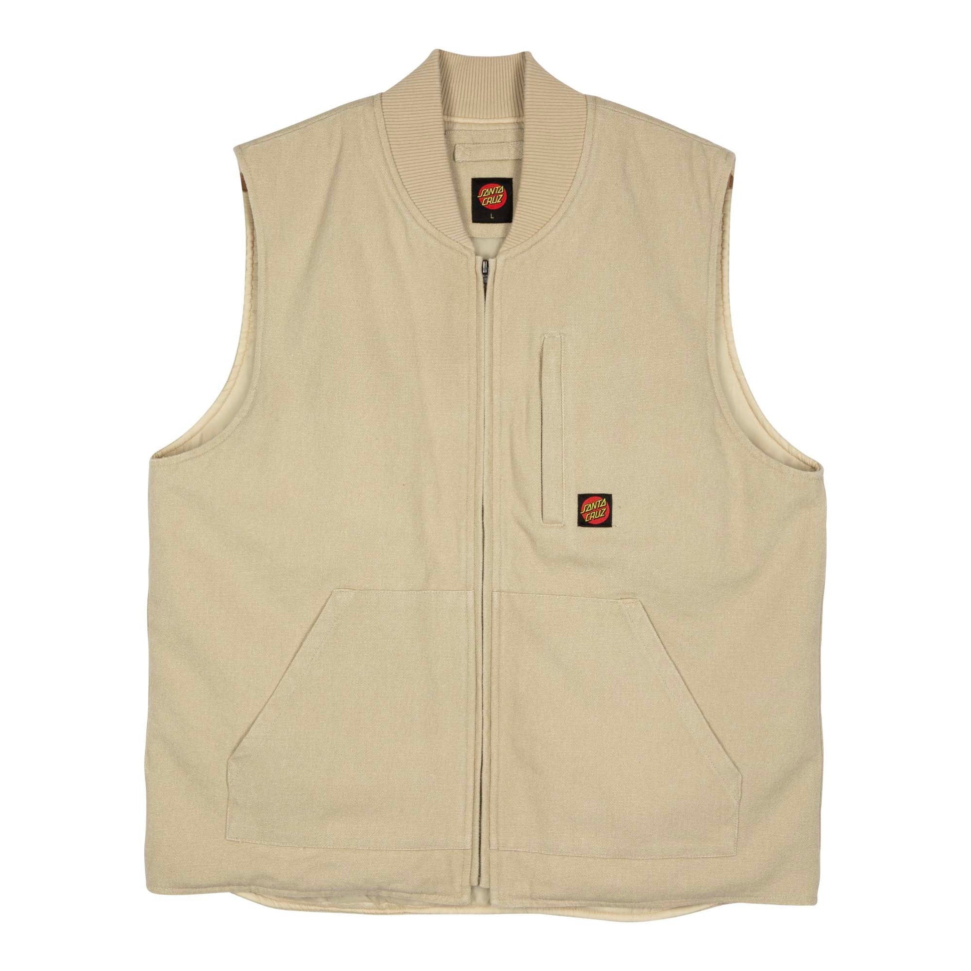 100% cotton canvas, regular fit vest with rib collar, left chest welt pocket, front pouch pocket and front woven label branding