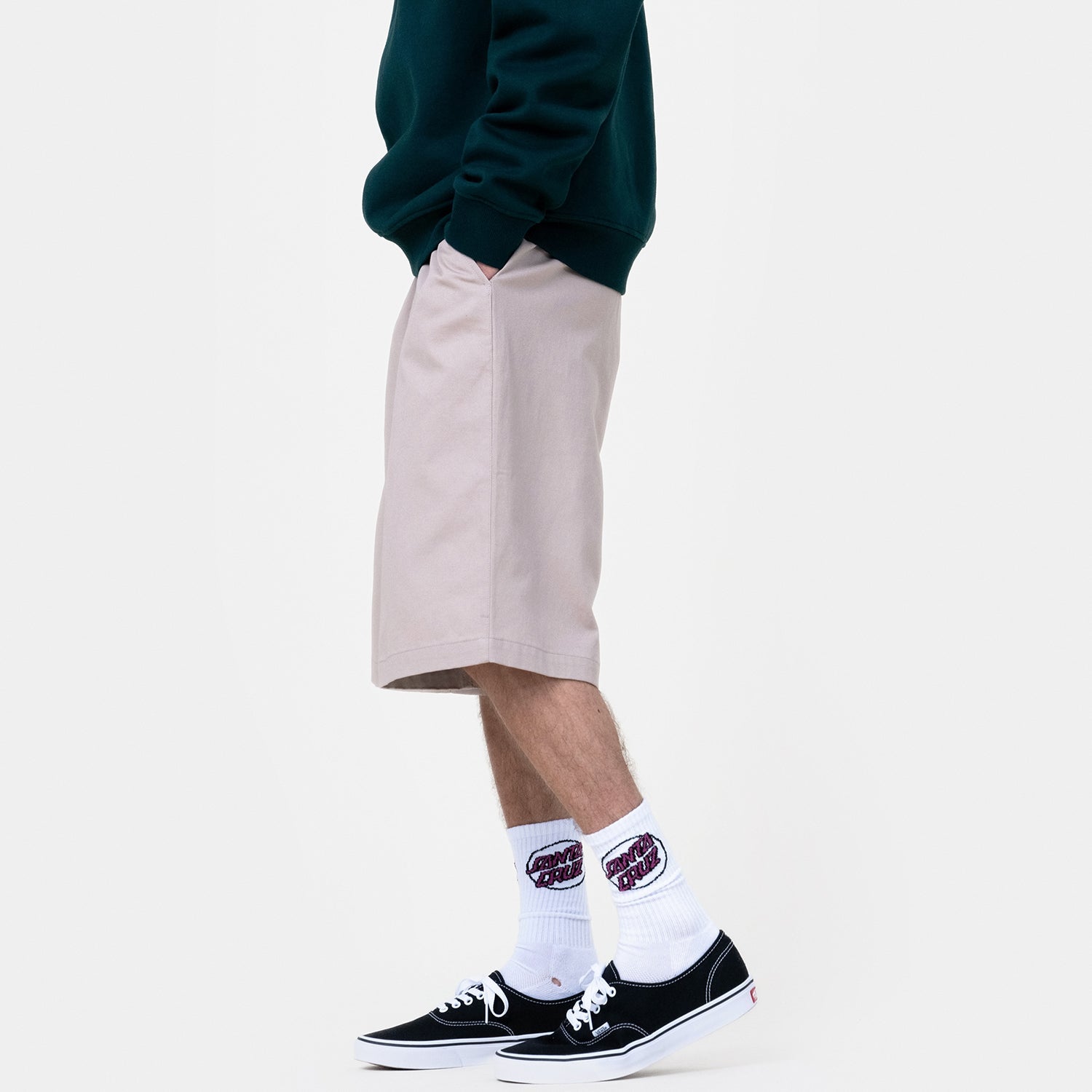 100% cotton twill, regular fit, shorts with twin front pockets, back welt pockets, side leg welt pocket and woven label branding