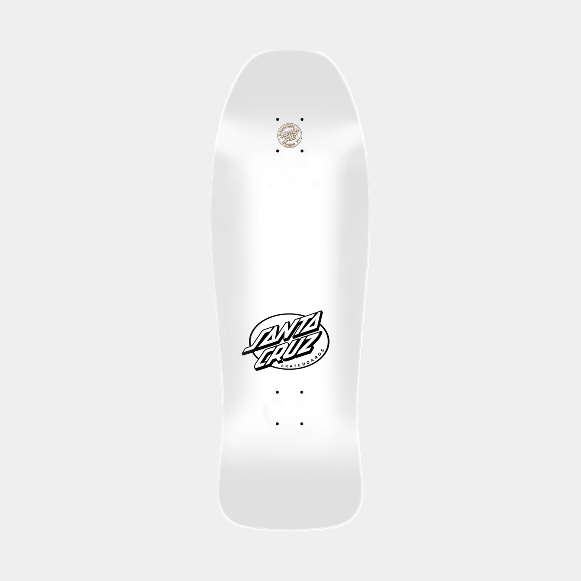 Santa Cruz Skateboards Jeff Kendall Snake Reissue deck featuring spot matte graphics on full dip white with 2025 Reissue laser engraved decktop logo.