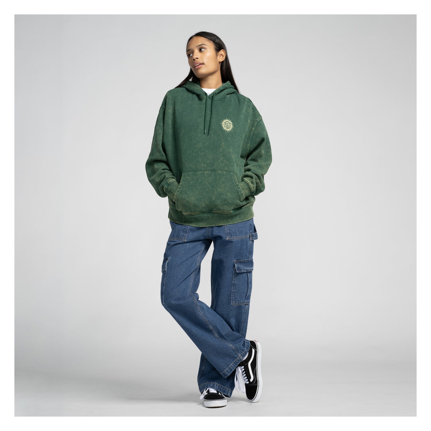80% cotton, 20% polyester, 330gsm brushed fleece, boxy fit, hooded sweatshirt with pouch pocket, left chest print and back print