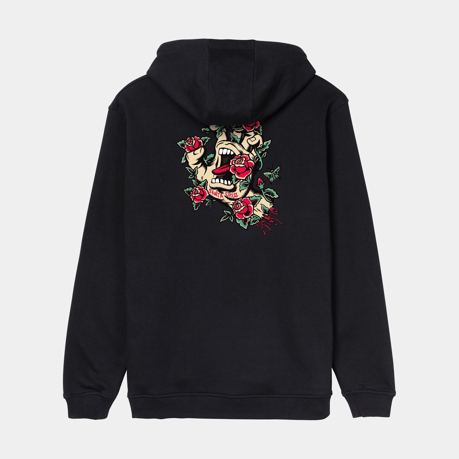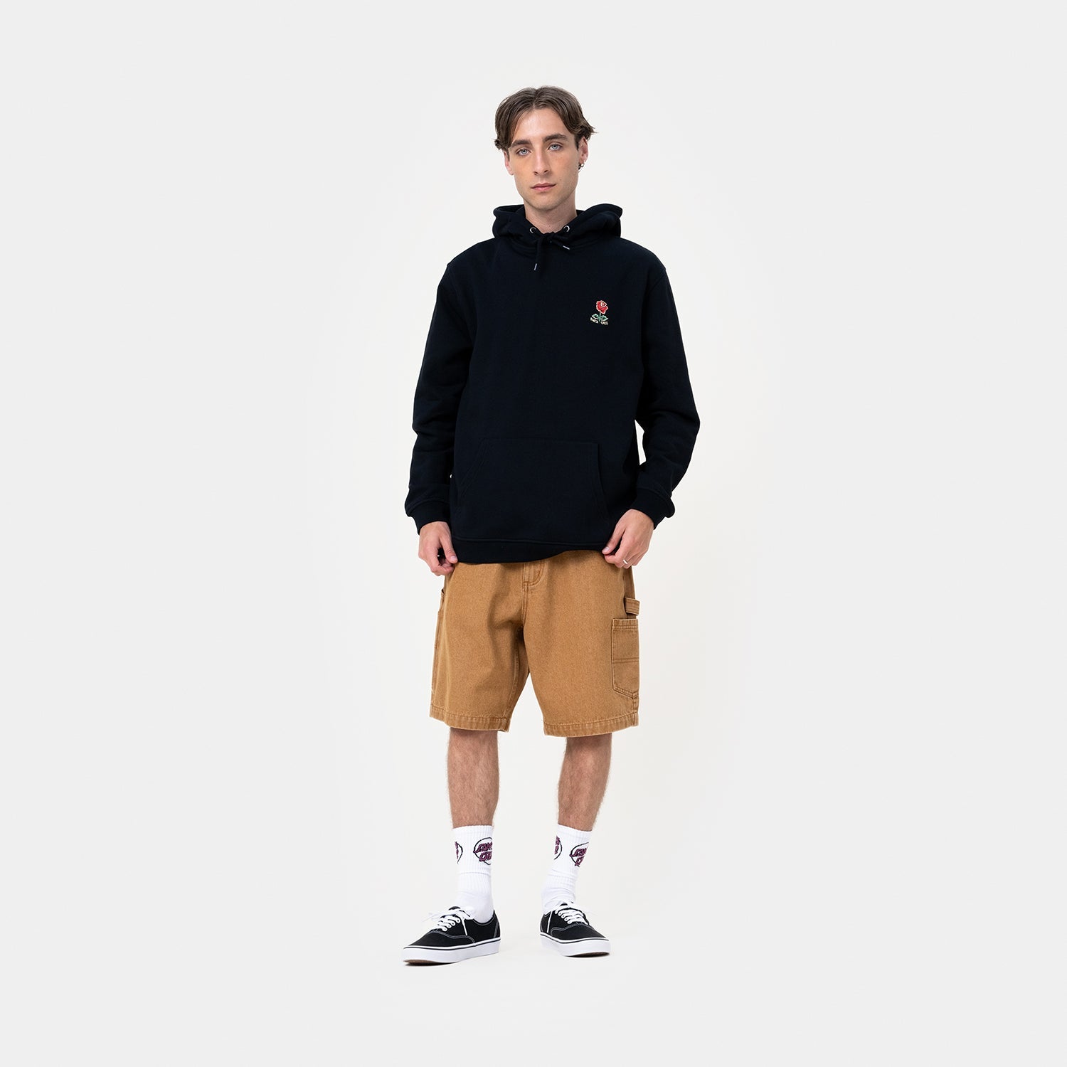 80% cotton, 20% polyester, 330gsm brushed fleece, regular fit, hooded sweatshirt with pouch pocket, left chest print and back print