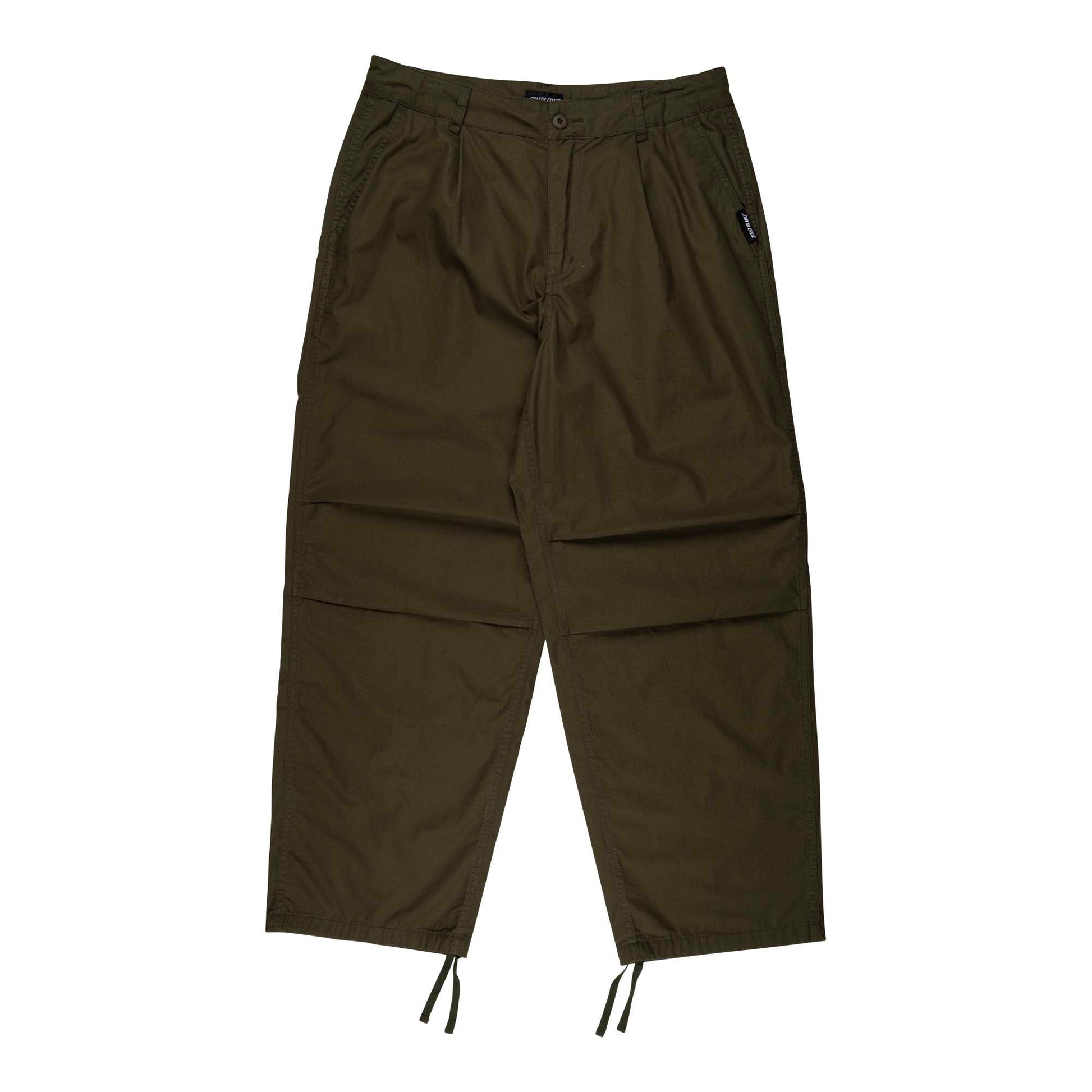 100% cotton, regular fit pant with front and back pockets, pleats at waist and knee and woven label branding