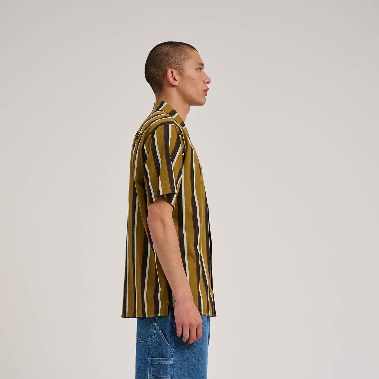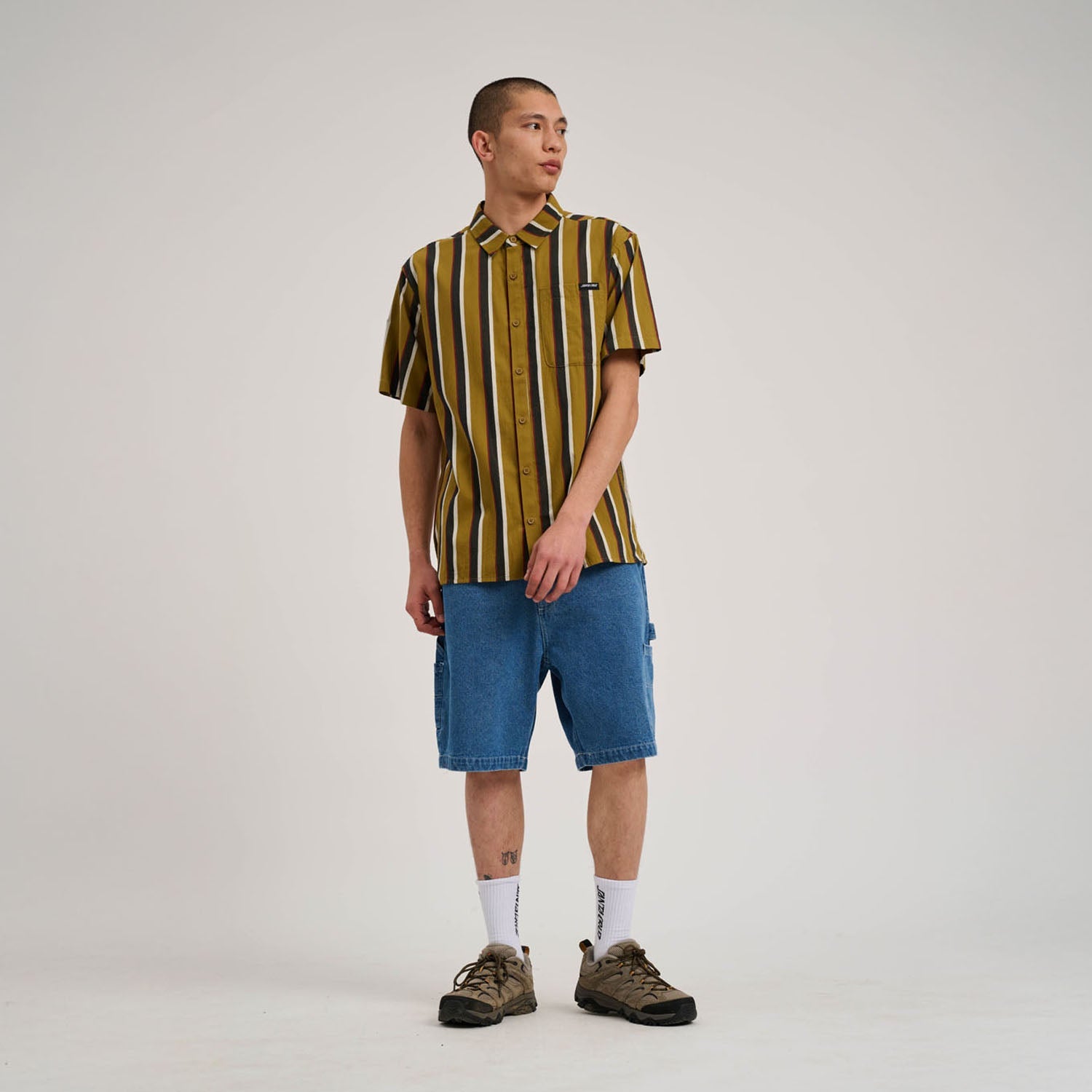 100% cotton, boxy fit, short sleeve shirt with branded buttons, left chest pocket and back logo applique