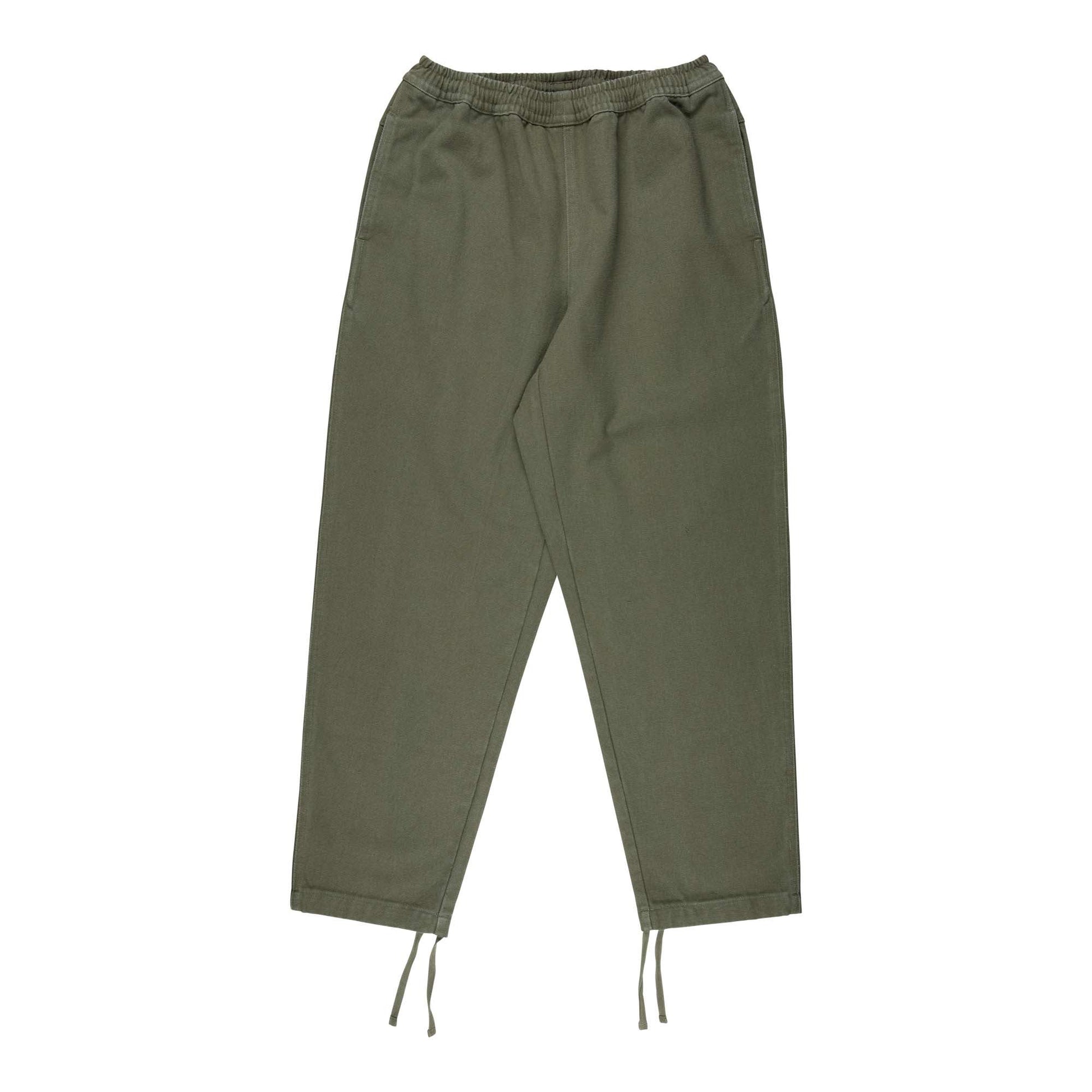 100% cotton canvas, relaxed fit, pant with elasticated waist, front pockets at side, back yoke panel, adjustable hems and patch pocket with woven label branding