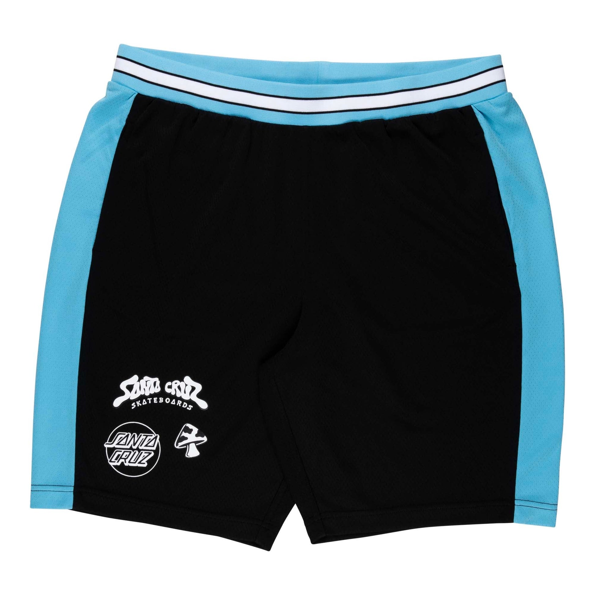100% polyester mesh, shorts with engineered stripe rib waistband, front pockets, back pockets, side seam panels, right leg prints and back woven label branding