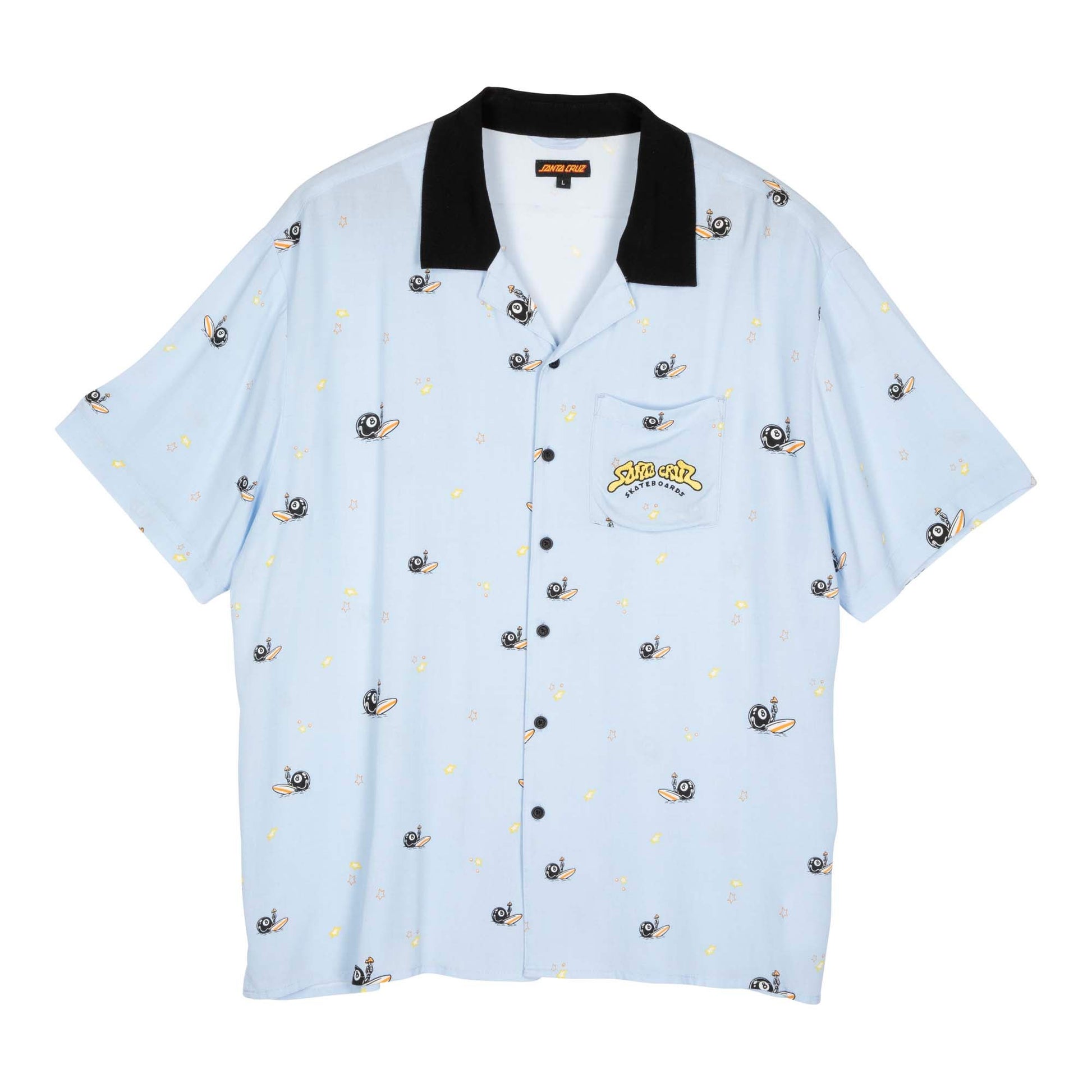 100% rayon, boxy fit, short sleeve shirt with all over print, contrast collar, branded buttons and embroidered left chest pocket