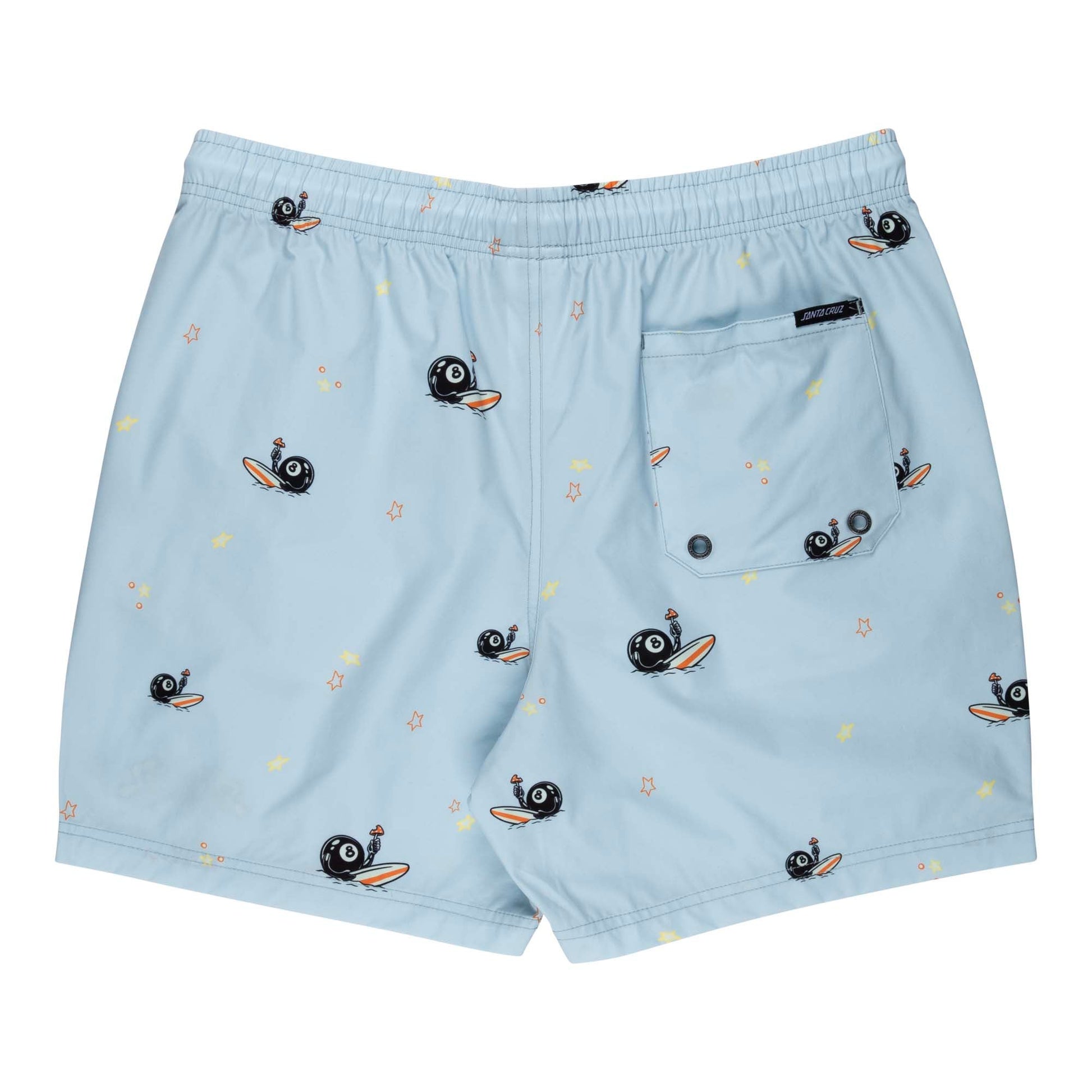 100% polyester, stretch microfibre, elasticated waist swimshort with 17" outseam, side pockets and back pocket, all over sublimated print, left leg embroidery and woven label branding