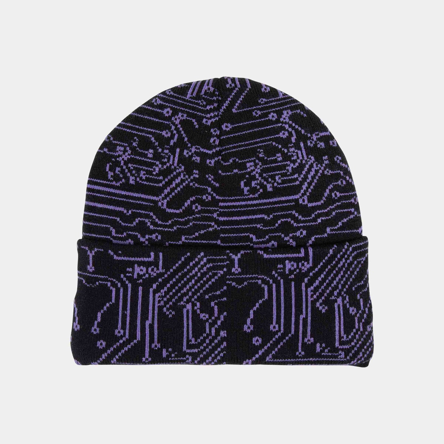 100% acrylic, lightweight, tight knit beanie with all over jacquard, turn up and woven label branding