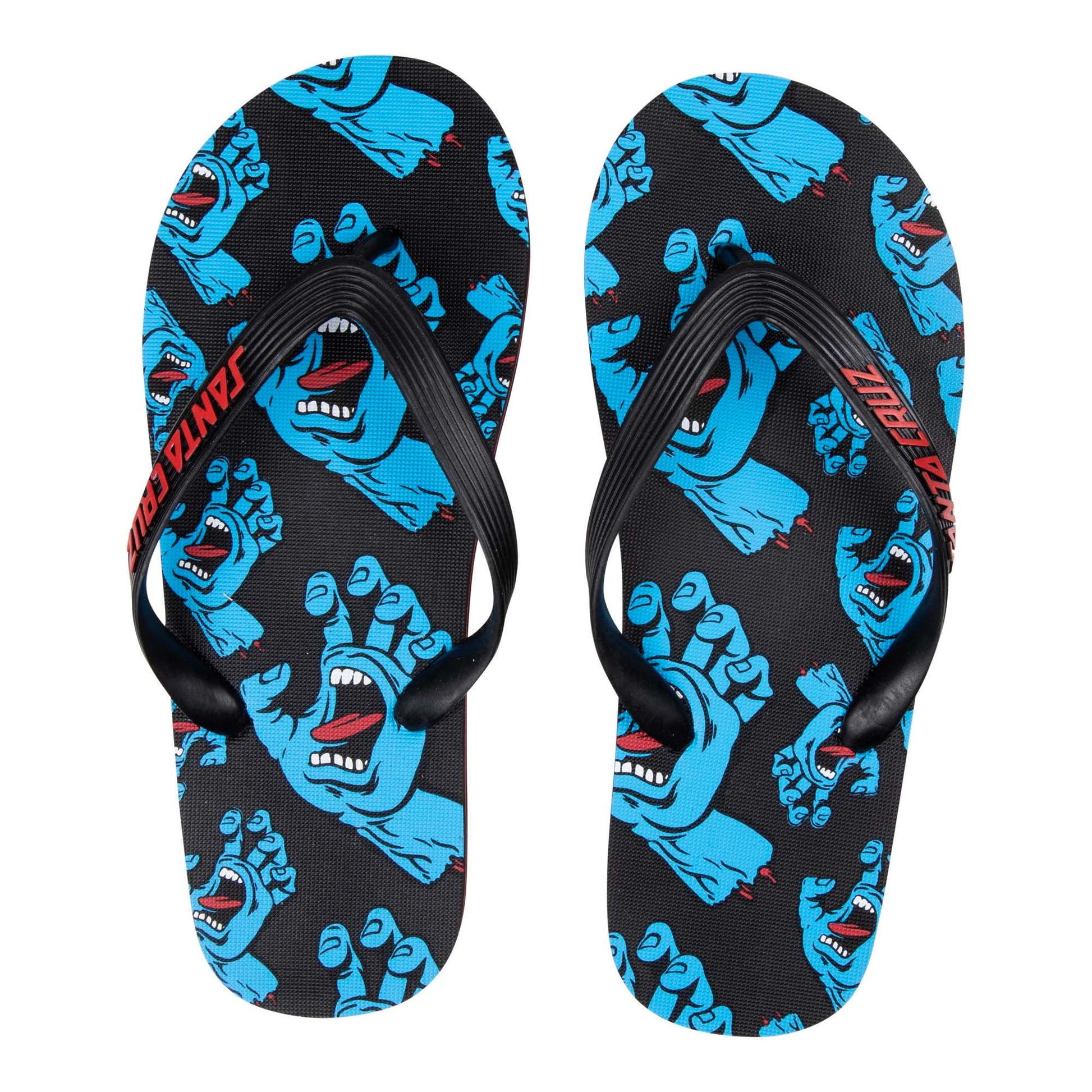 Upper: rubber, sole: PE, flip flop with printed footbed and embossed logo on strap