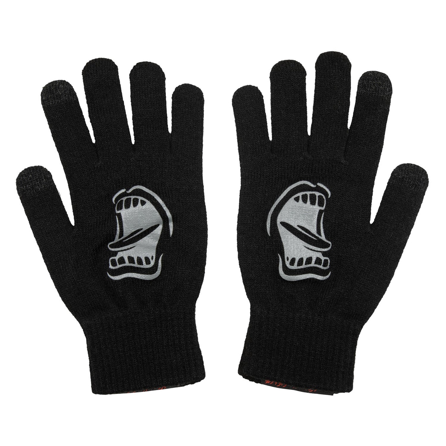 100% acrylic, glove with touch screen compatible thumb and fore finger, palm print and woven clamp label