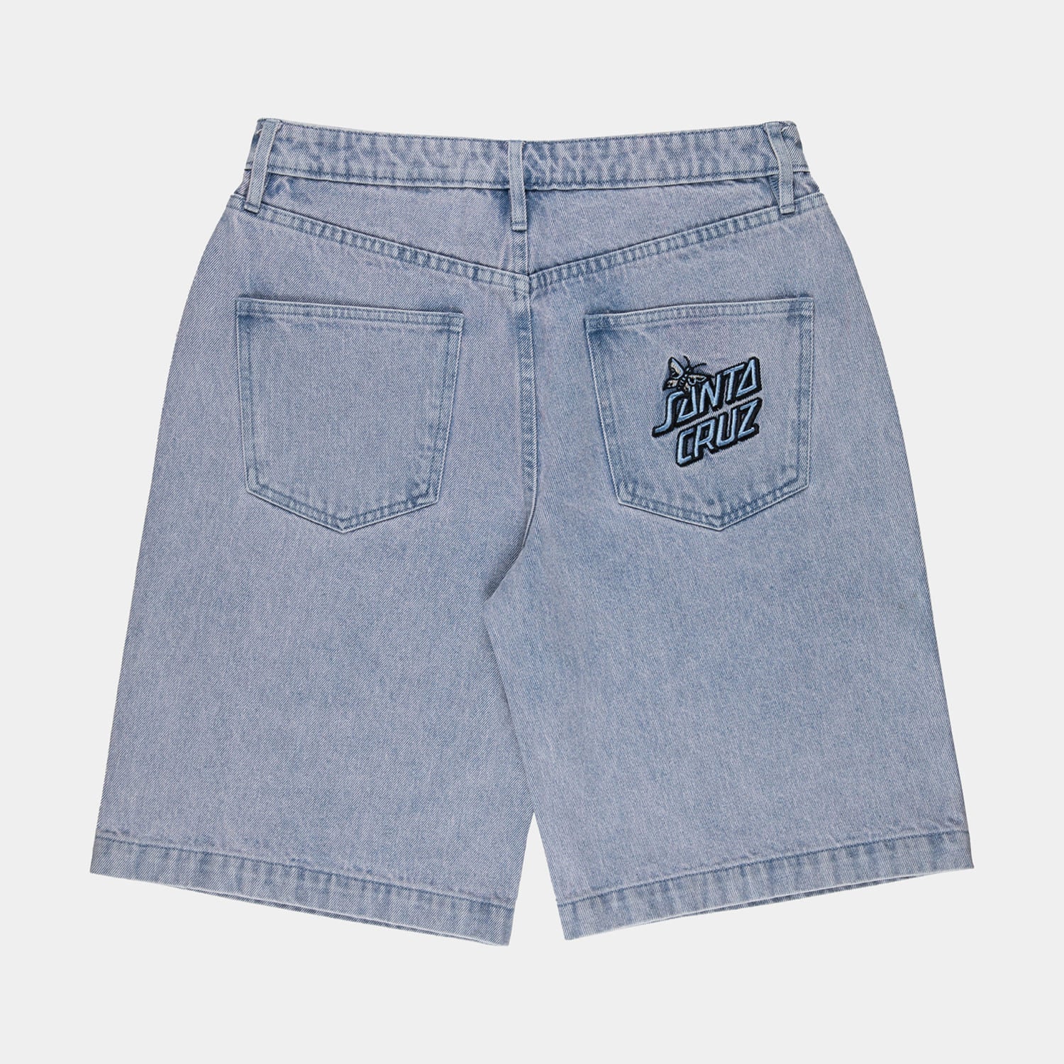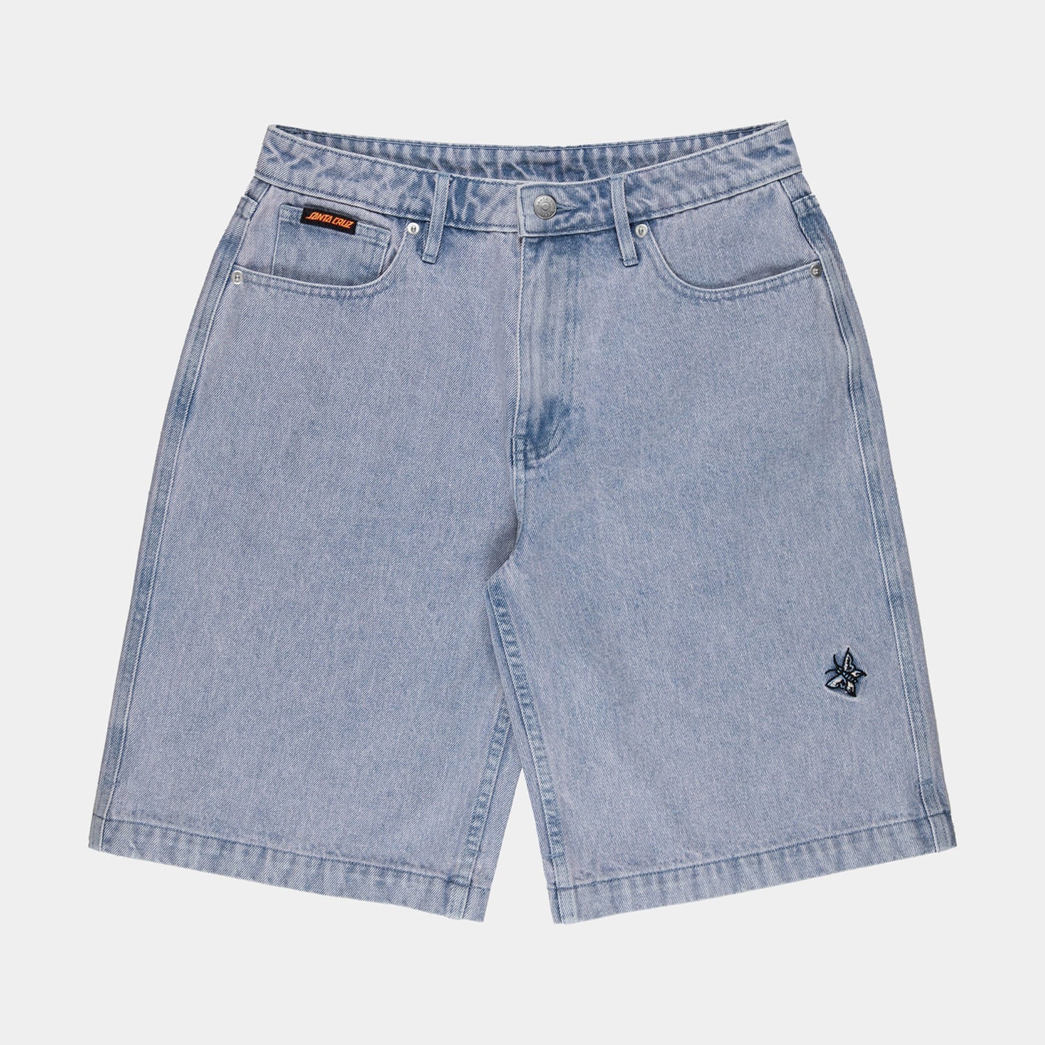 94% cotton, 6% polyester, 13.5oz denim, baggy fit shorts with front pockets, back pockets, front embroidery, back pocket embroidery and woven label branding