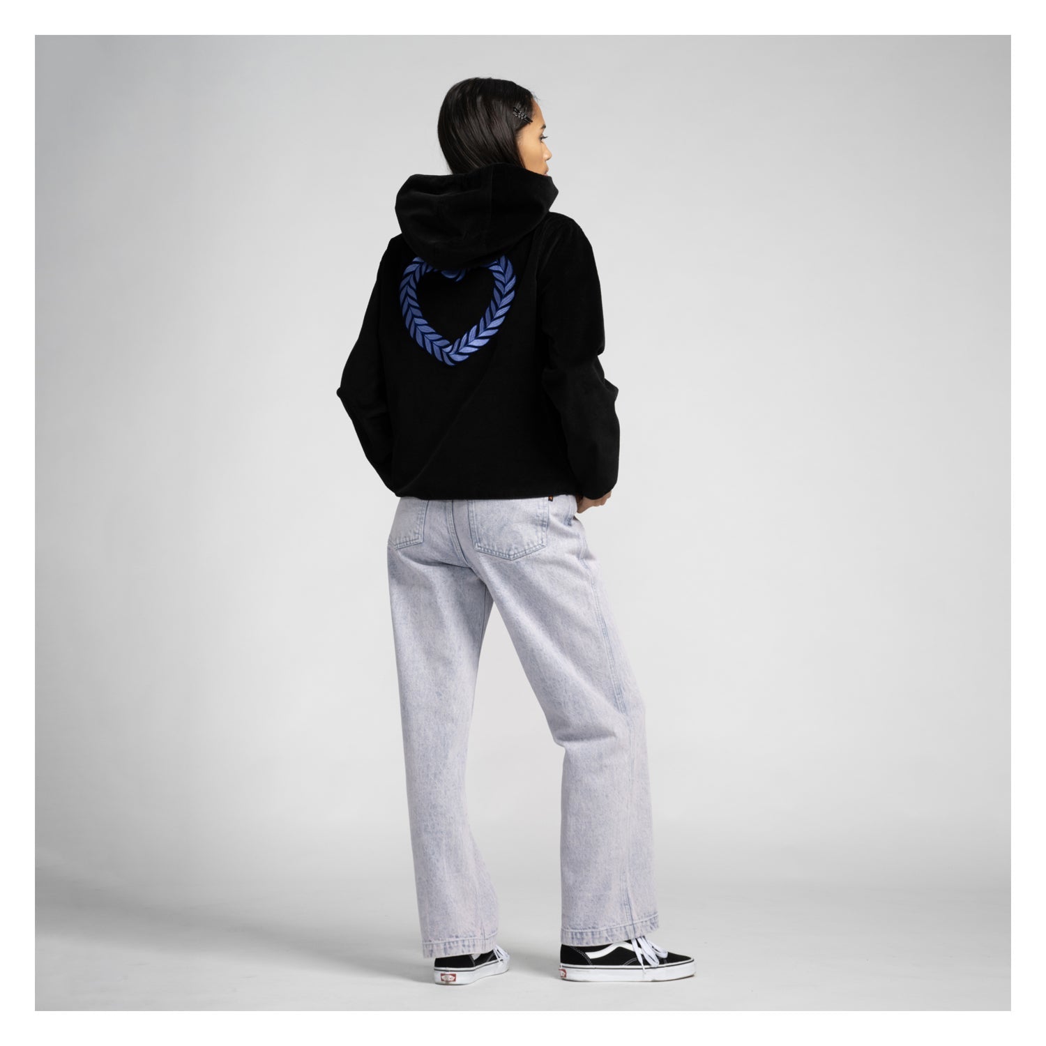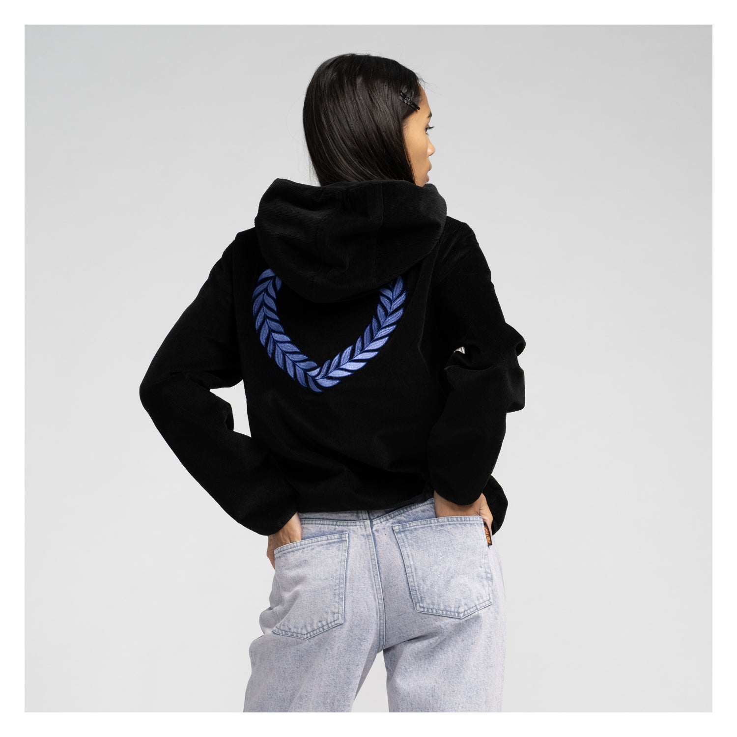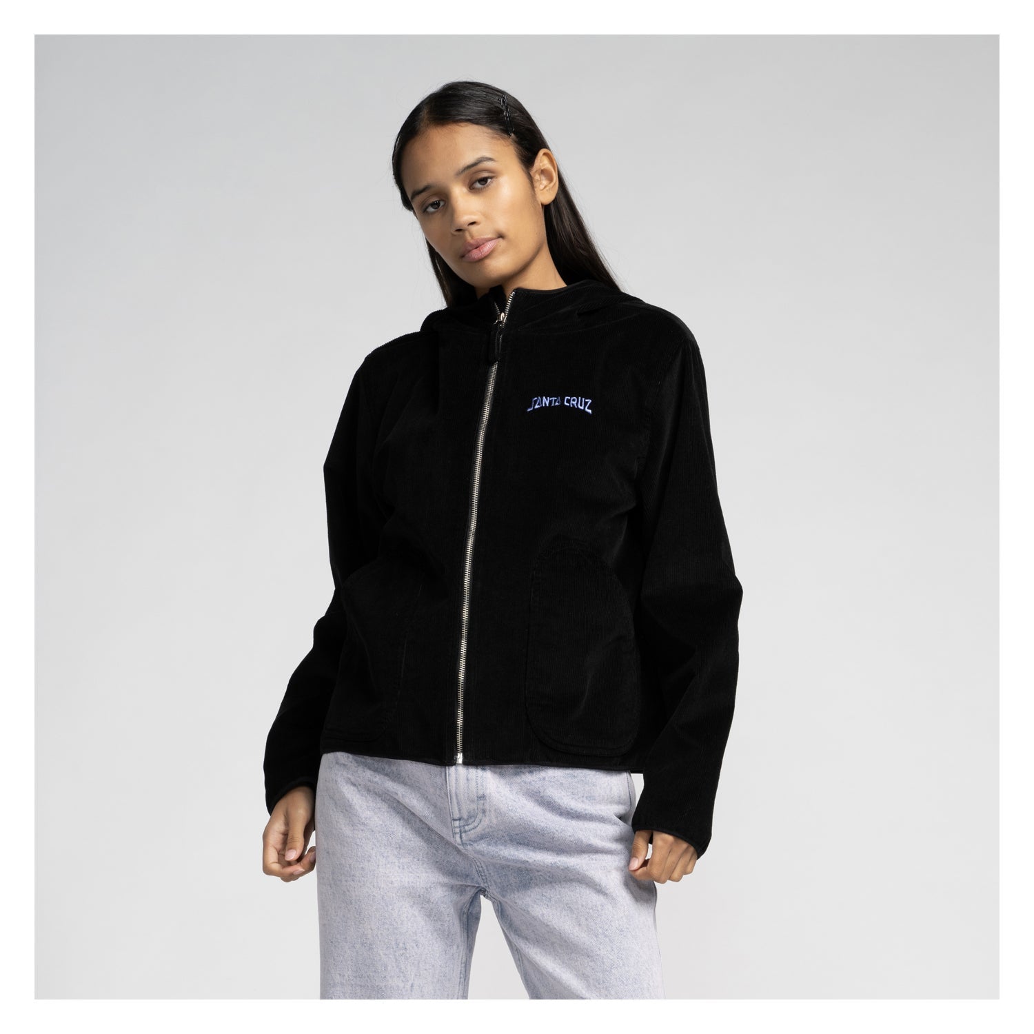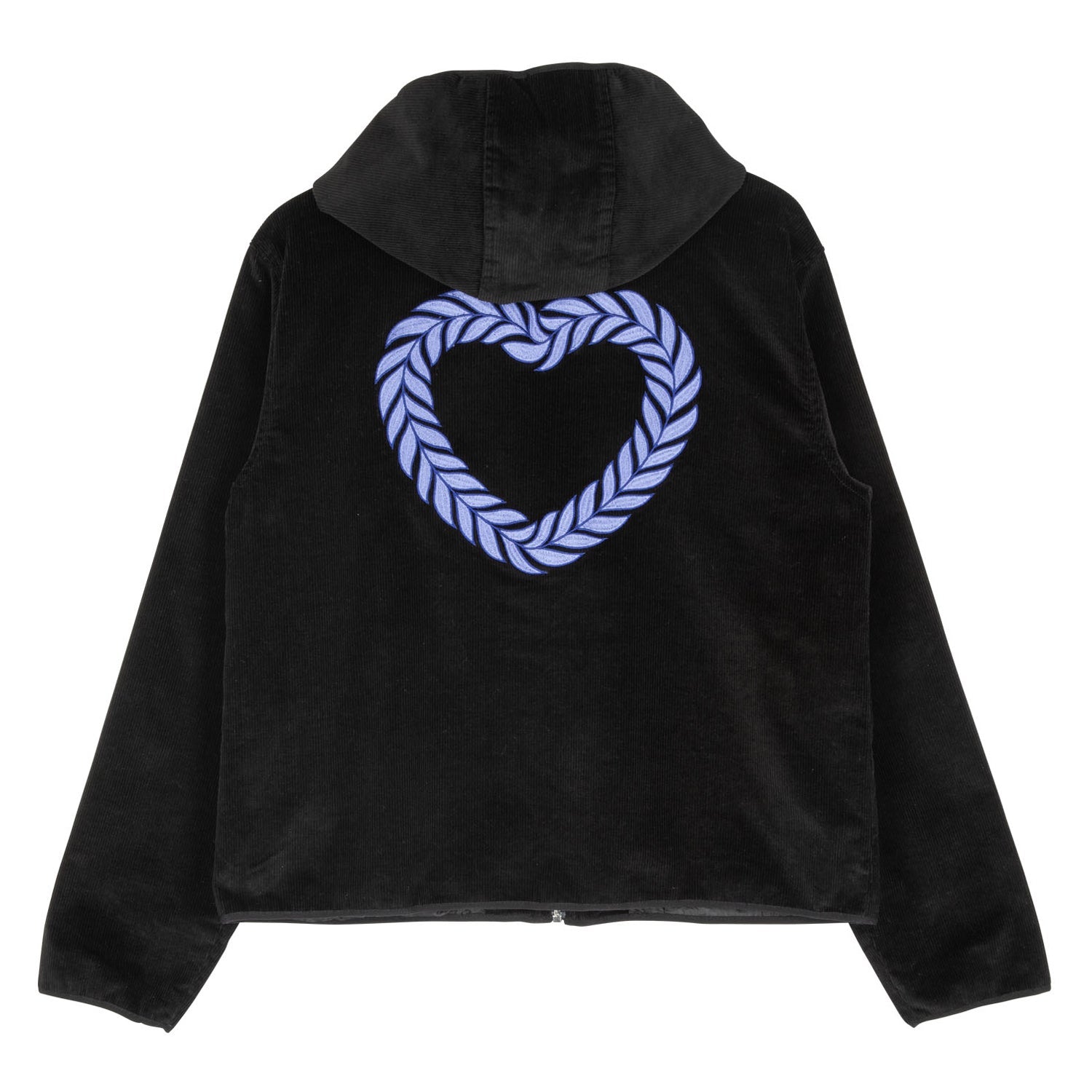 100% cotton corduroy, loose fit, hooded zip jacket with patch pockets, left chest embroidery and back embroidery