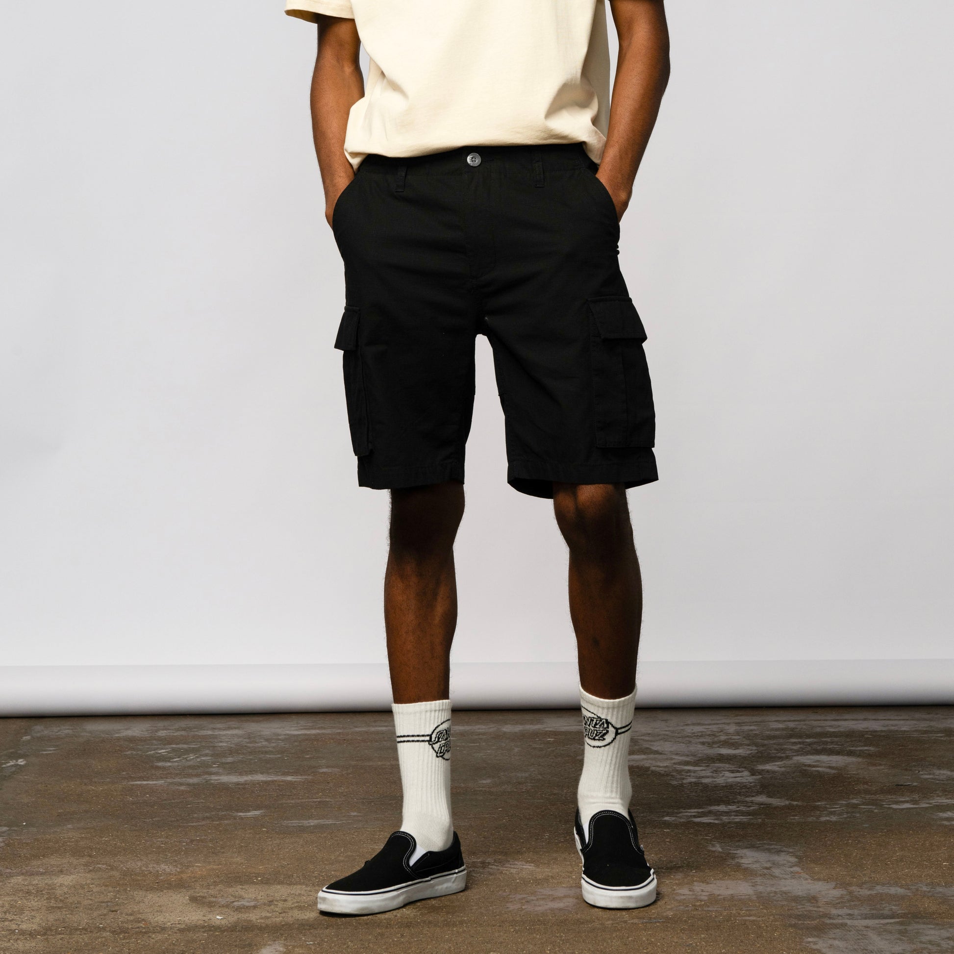 100% cotton ripstop, regular fit cargo shorts with side entry pockets, back flap pockets, leg cargo pockets and woven label branding
