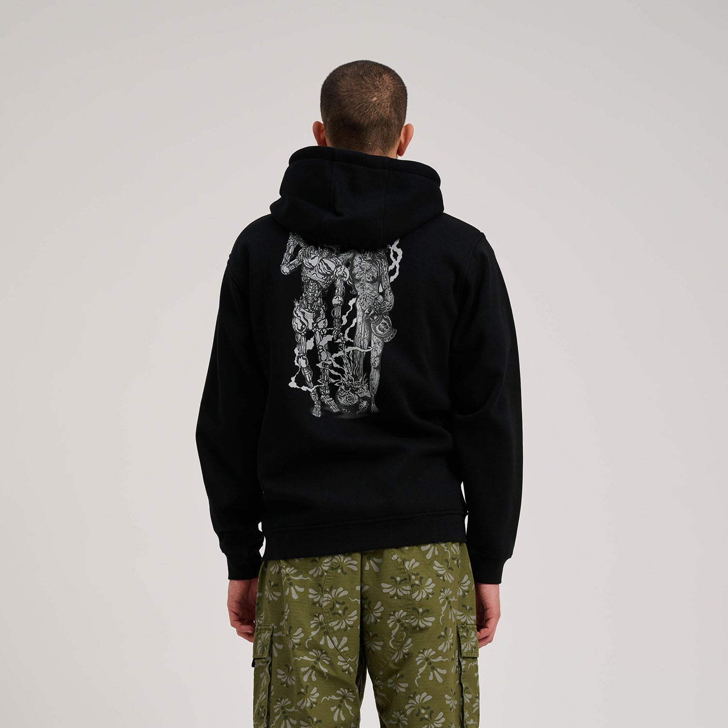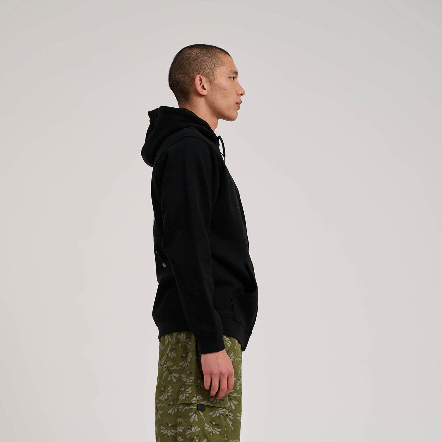 80% cotton, 20% polyester, 330gsm brushed fleece, regular fit, zip hooded sweatshirt with pouch pocket, left chest print and back print