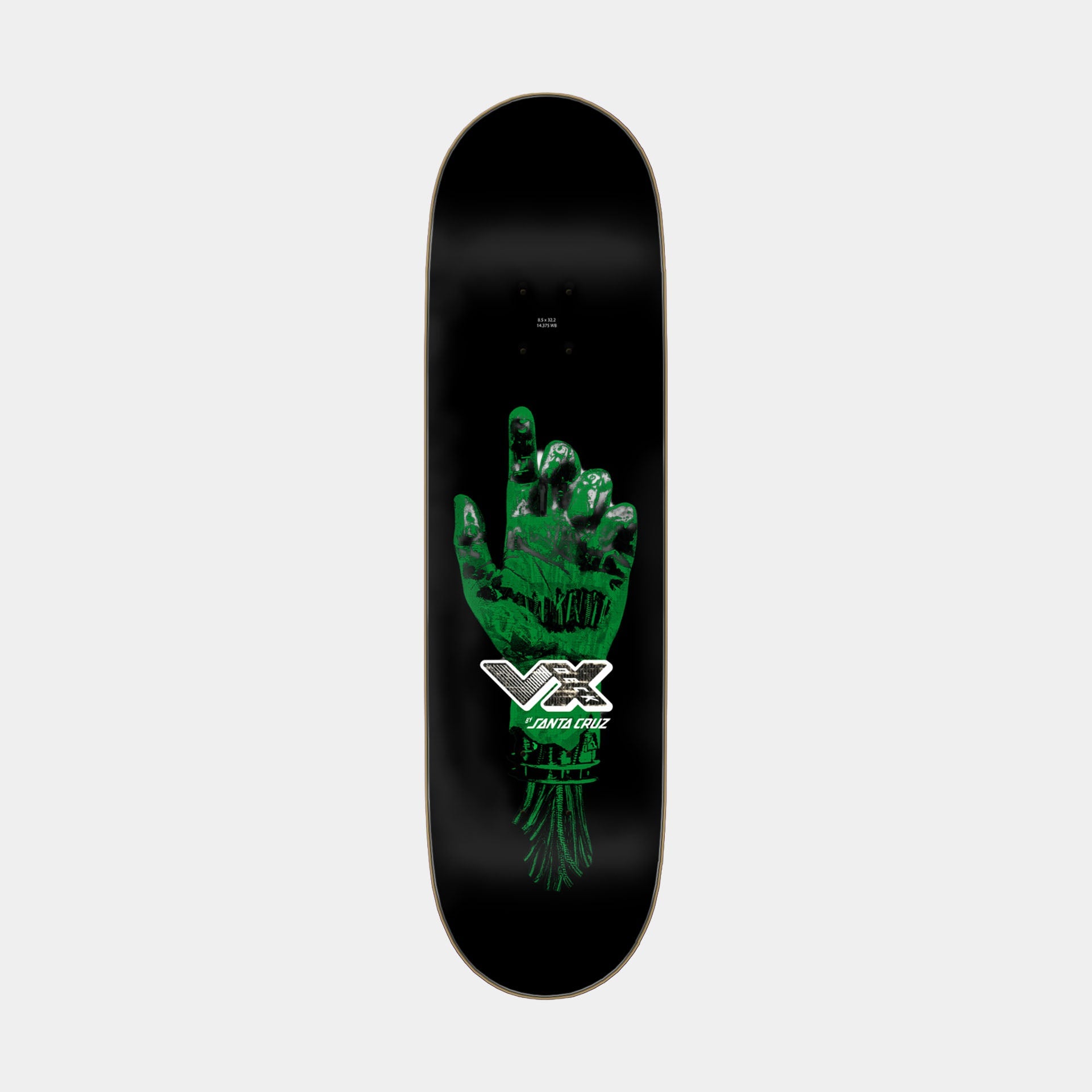Santa Cruz Skateboards Jake Wooten Dystopia Pro VX Deck with spot gloss and silver prismatic foil 4 color process graphics.