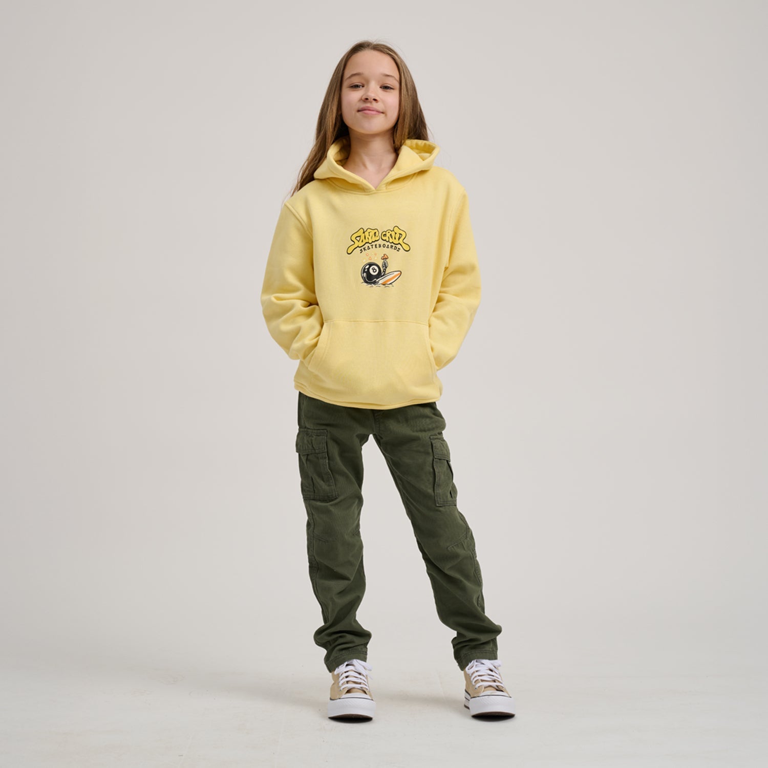 65% cotton, 35% polyester, 280gsm brushed fleece, regular fit, hooded sweatshirt with pouch pocket, chest print and back print