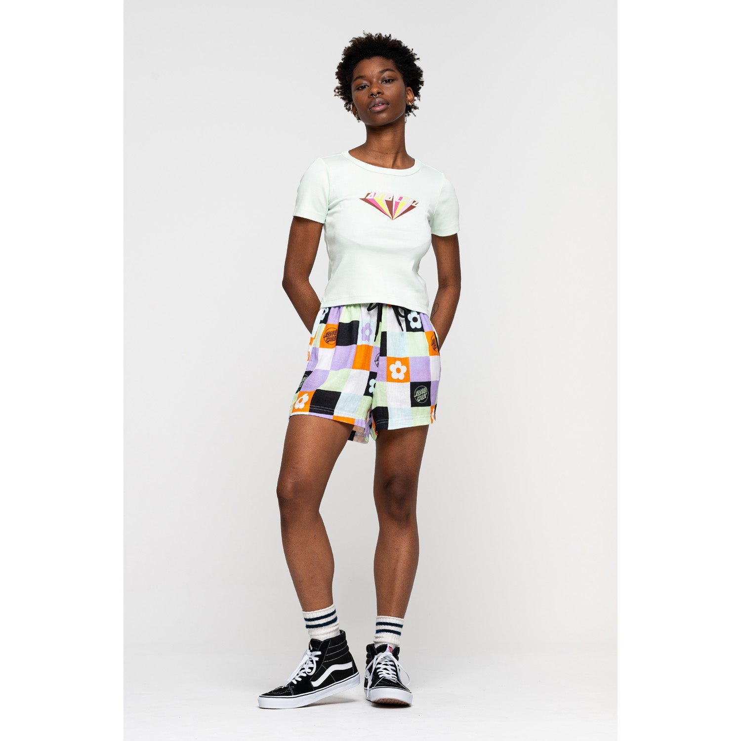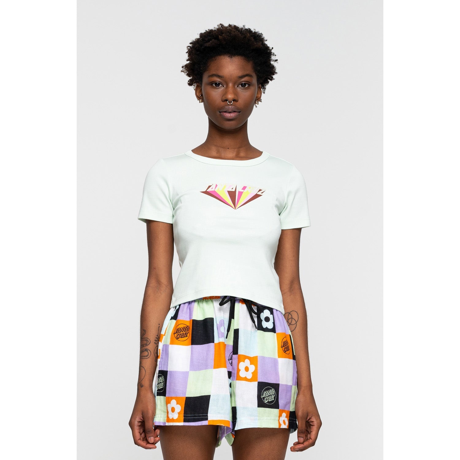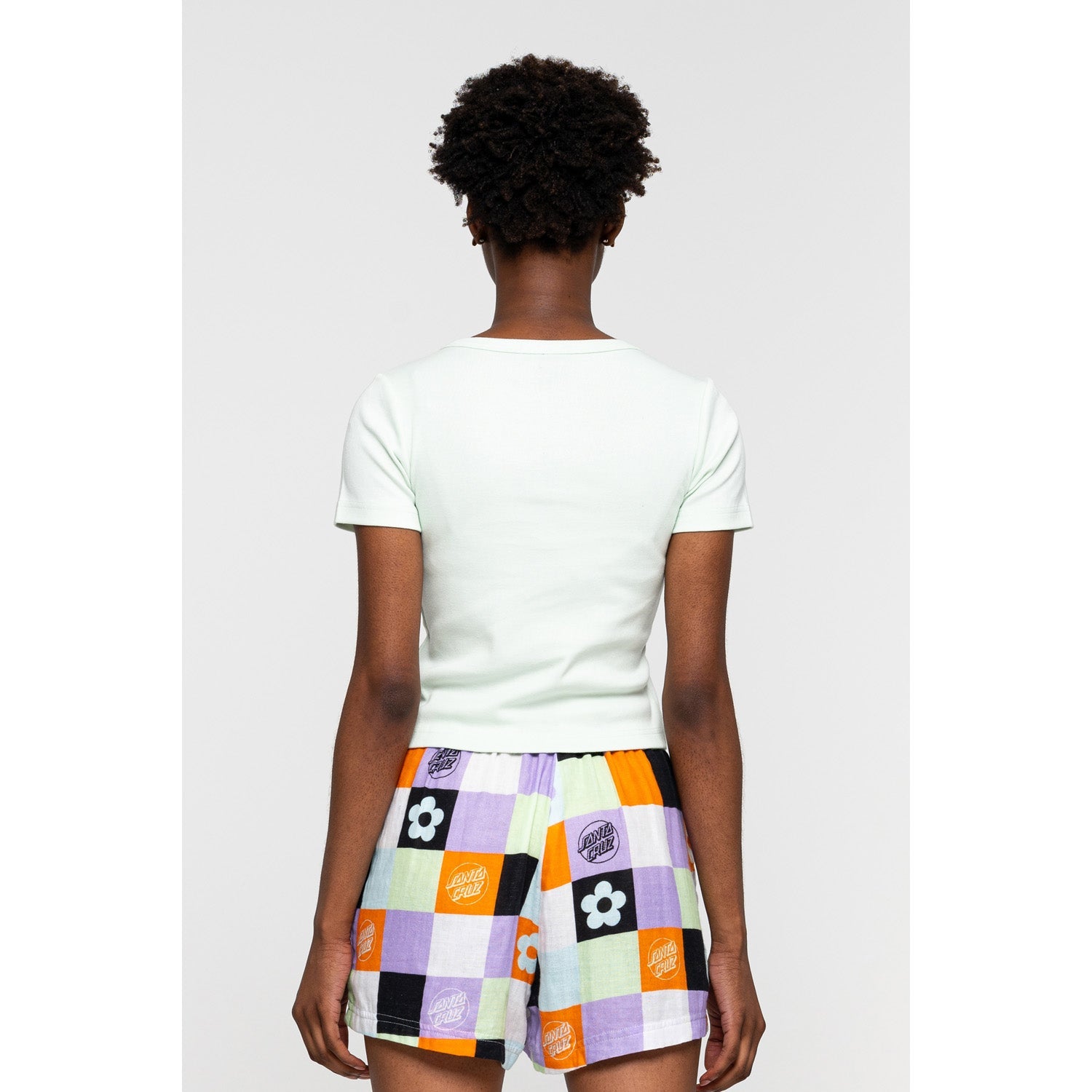 100% cotton, 210gsm rib jersey, cropped fit, short sleeve t-shirt with front print