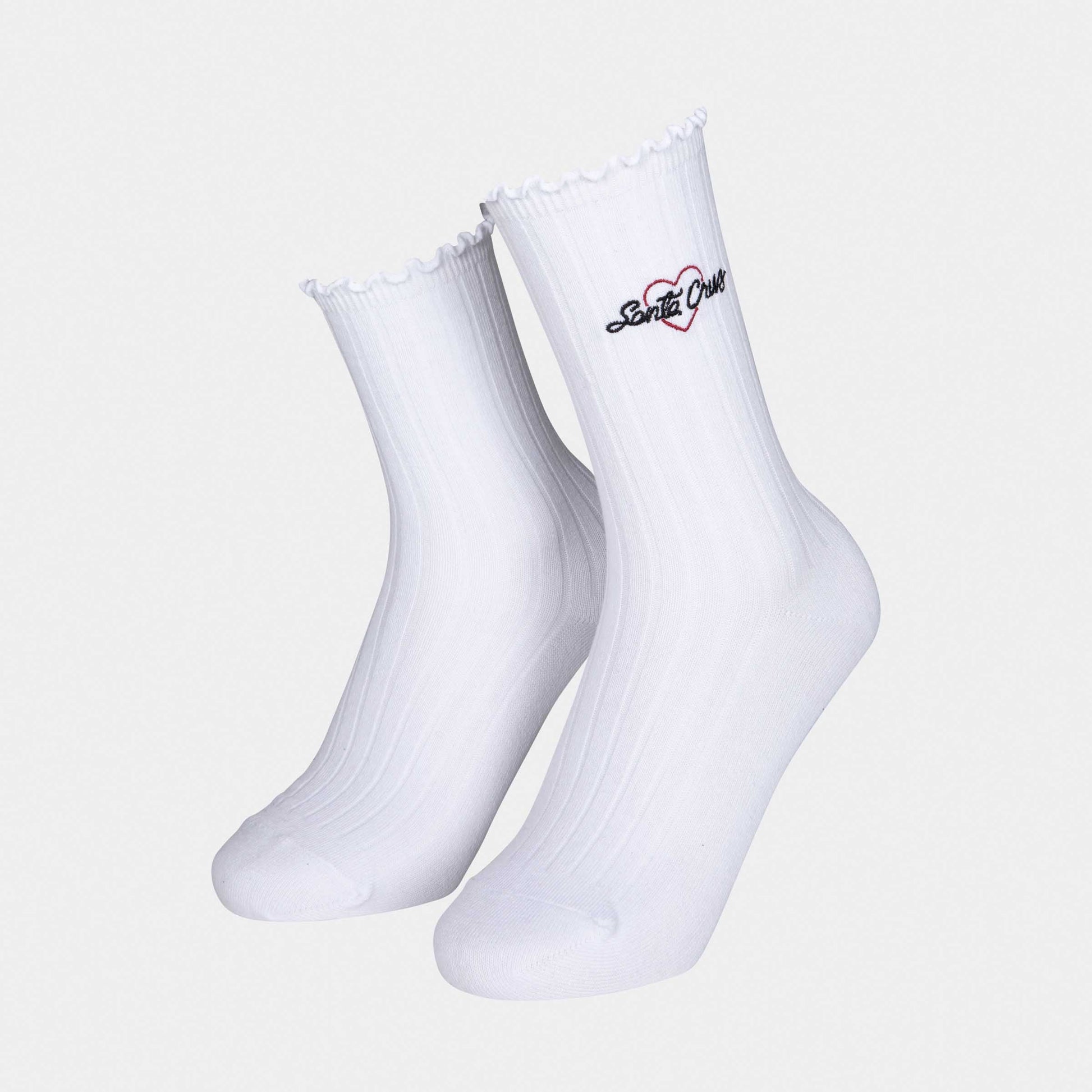80% cotton, 17% polyester, 3% elastane crew sock with lettuce edge trim and embroidery