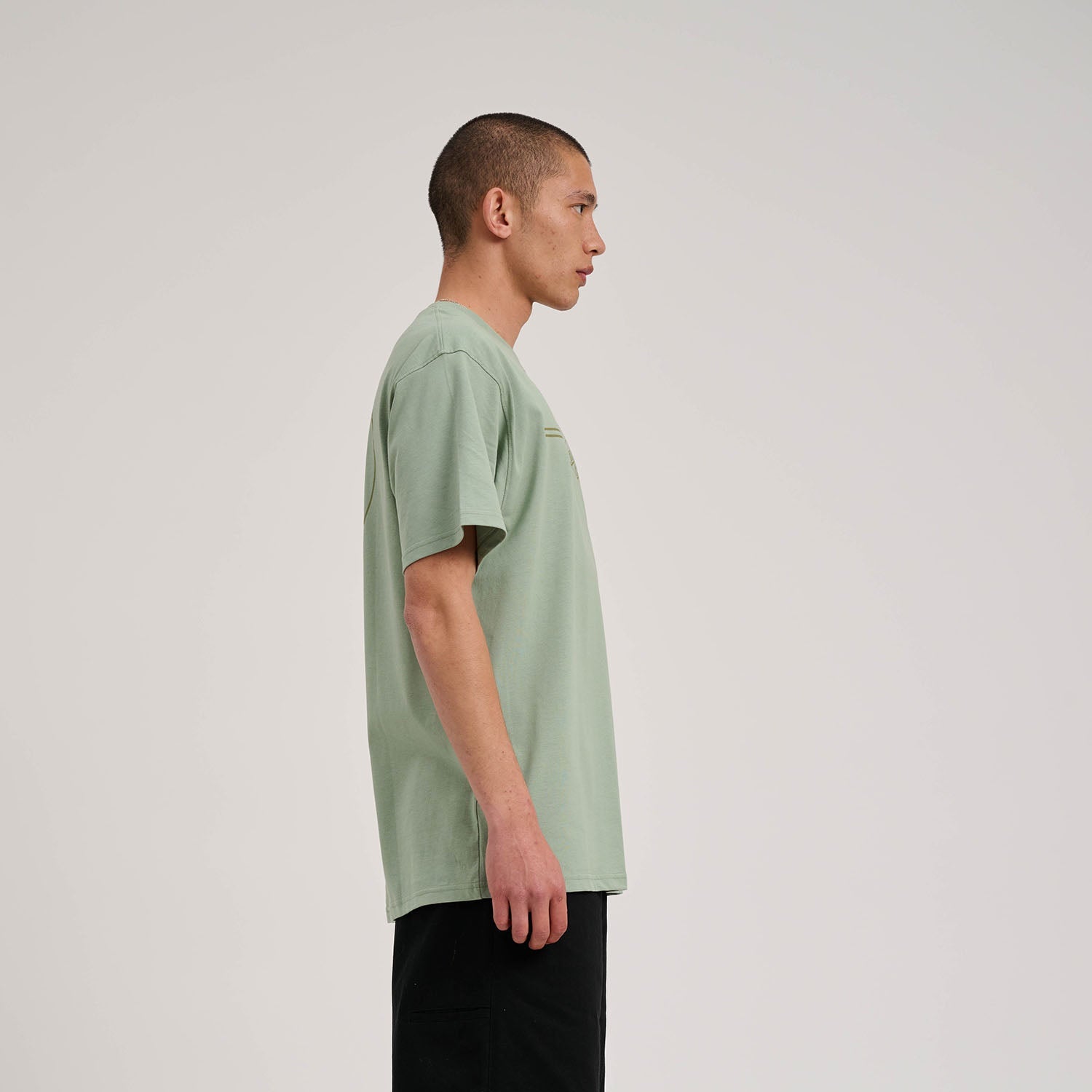 100% organic cotton, 235gsm heavyweight jersey, loose fit, short sleeve t-shirt with chest print and back print