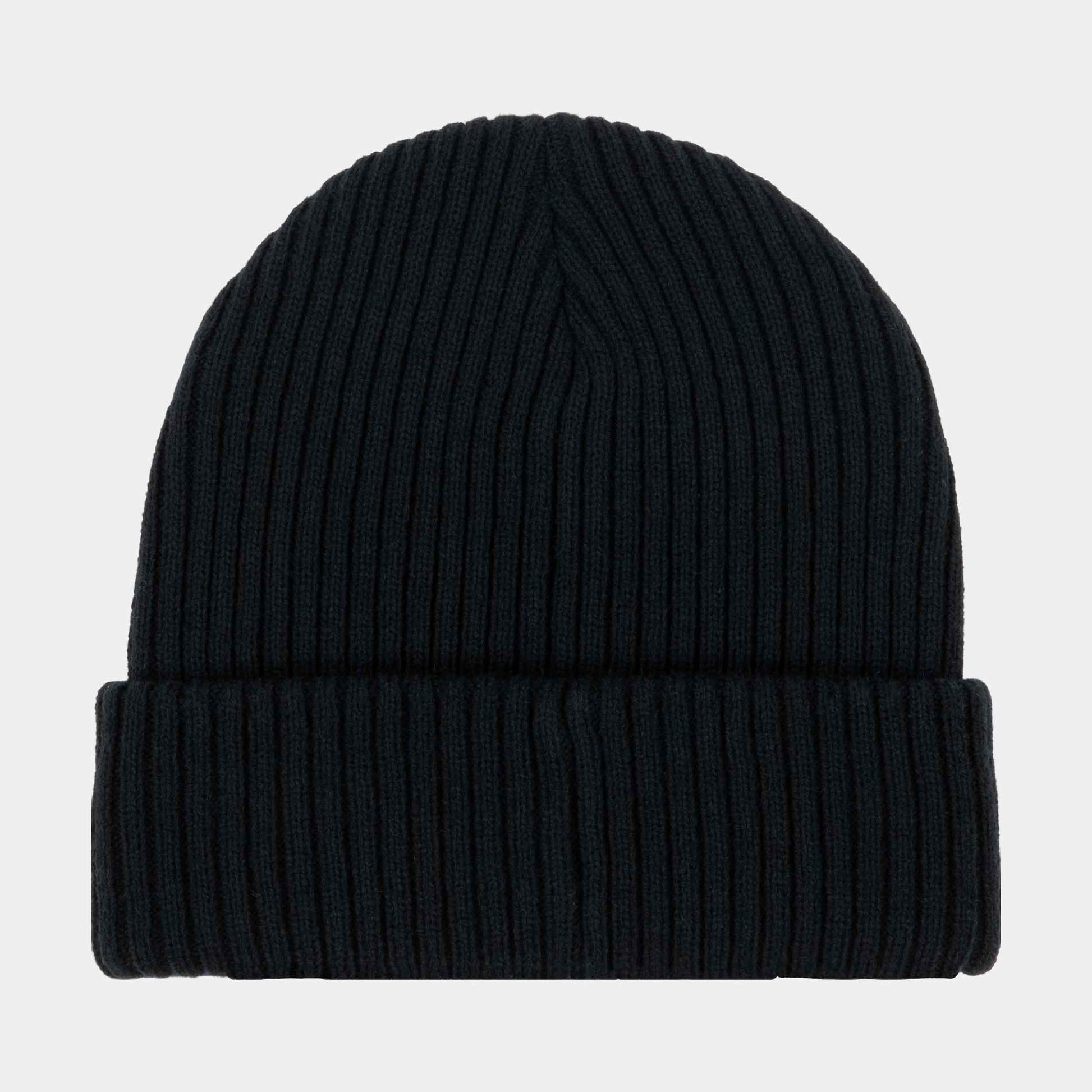 100% acrylic, lightweight, loose knit, rib beanie with turn up and rubber label branding