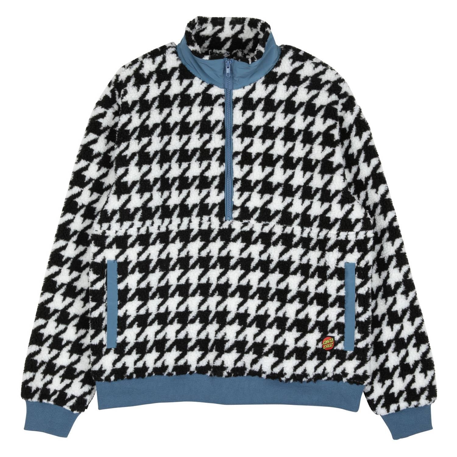 100% polyester sherpa fleece, oversized fit, funnel neck half zip jacket with front pockets and woven label branding