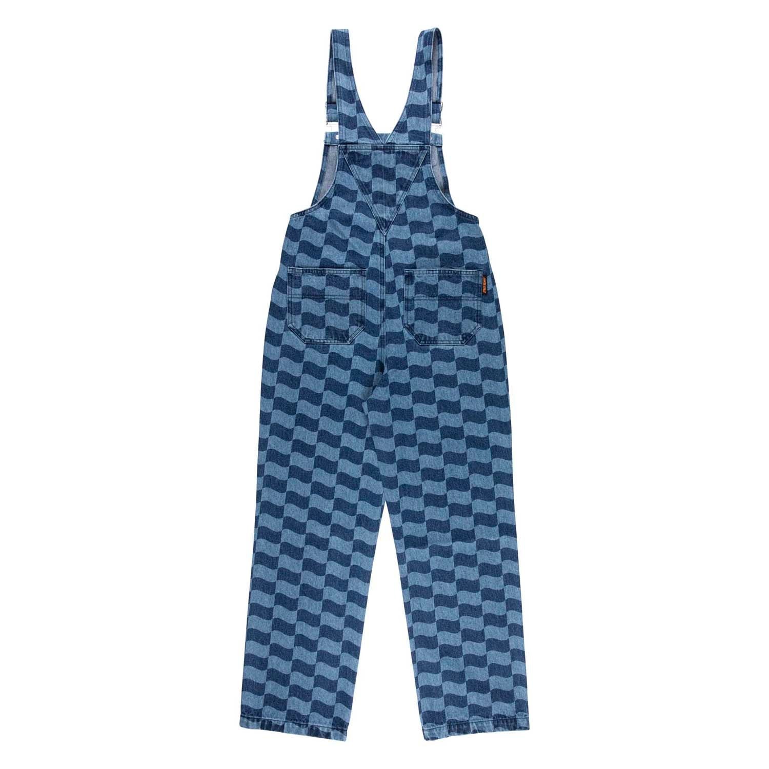 Blue Wave Check: 94% cotton, 6% polyester, 13.5oz denim, Light Khaki: 100% cotton twill, regular fit dungarees with front pouch pocket, back pockets, Blue Wave Check: all over discharge print and woven label branding
