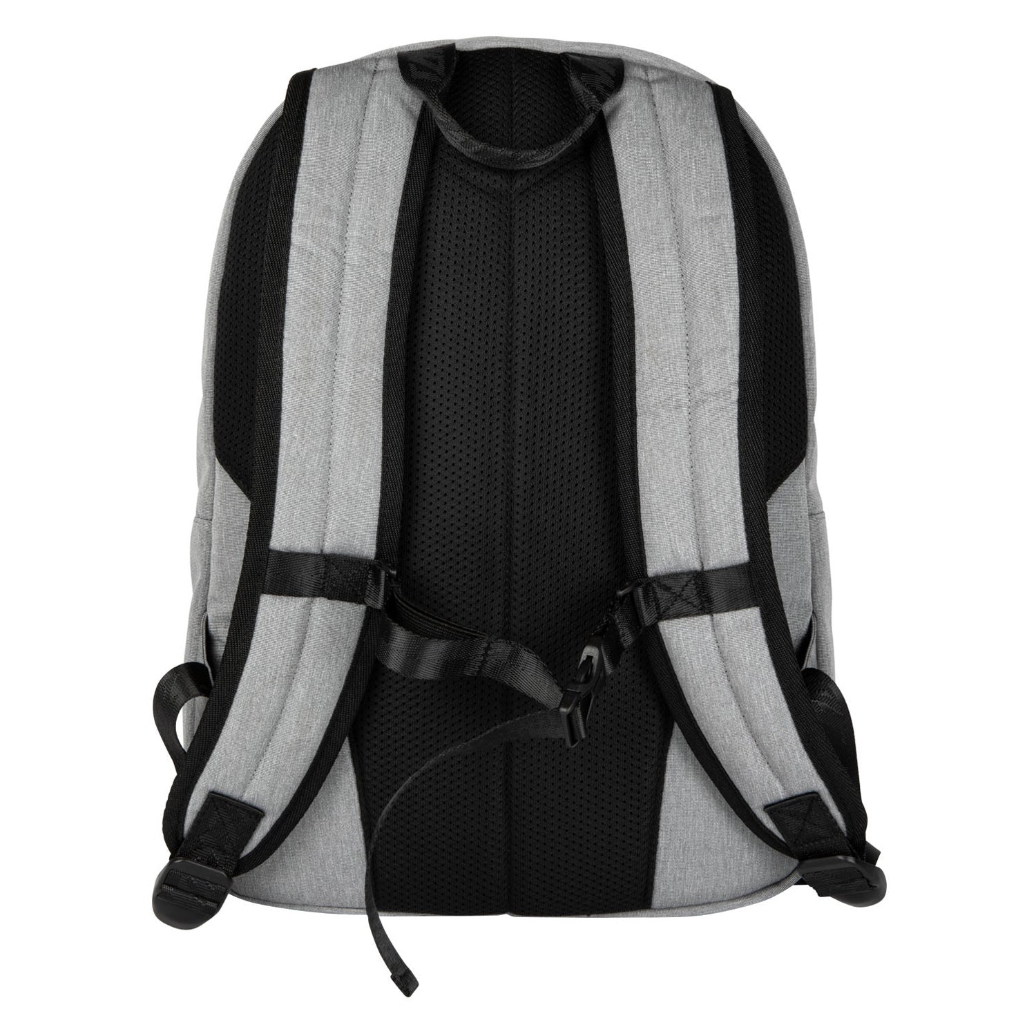 100% polyester, 600D backpack with zip entry main compartment and front pocket, inside mesh pocket with elasticated binding, padded back panel and front embroidery