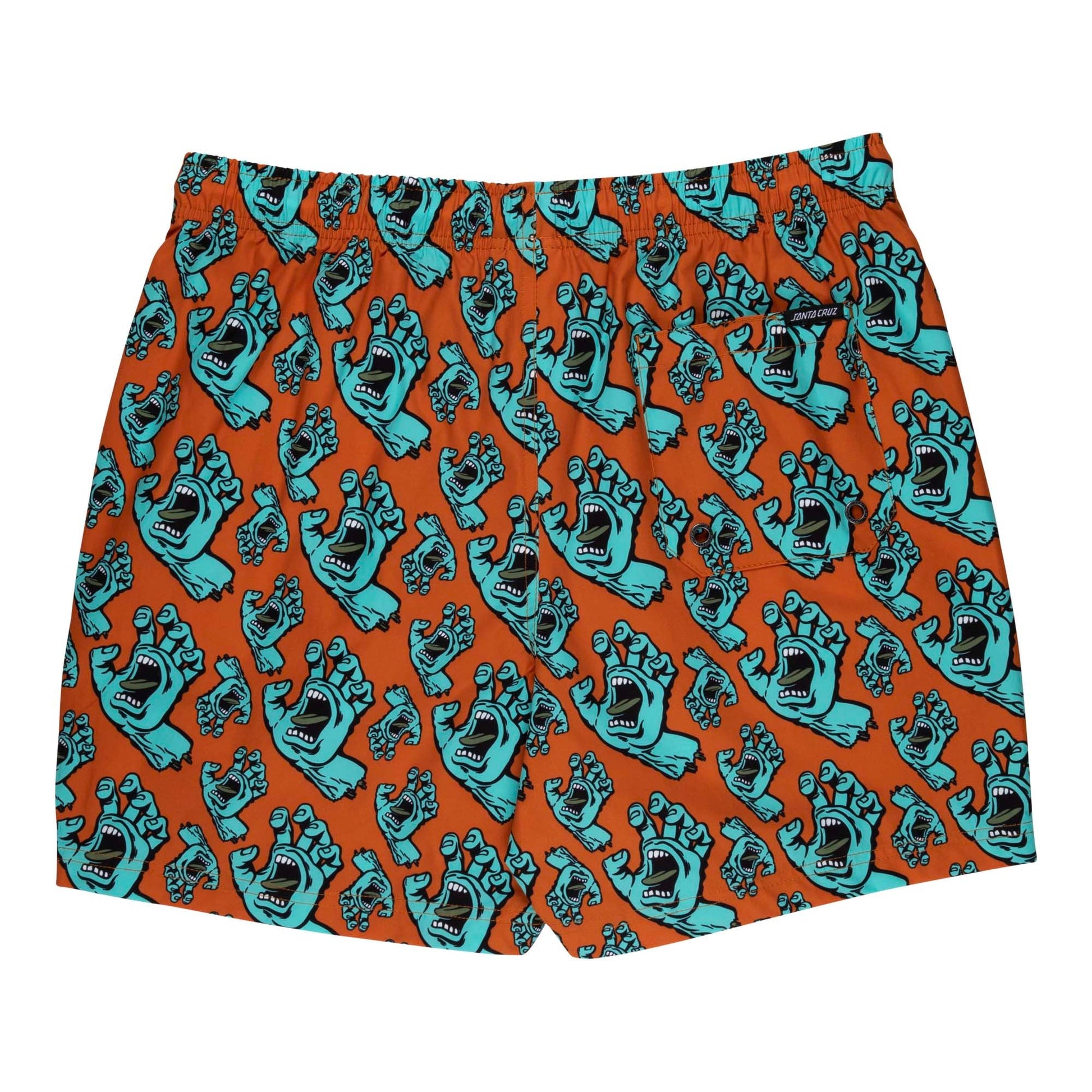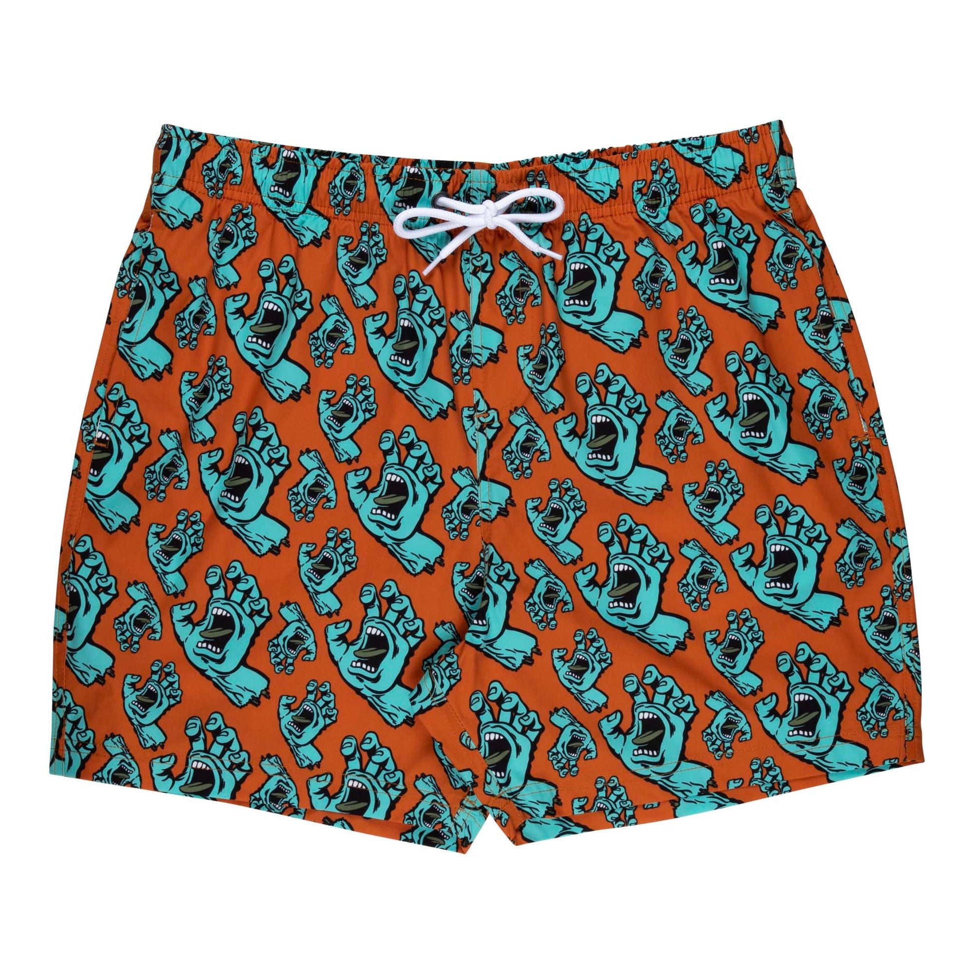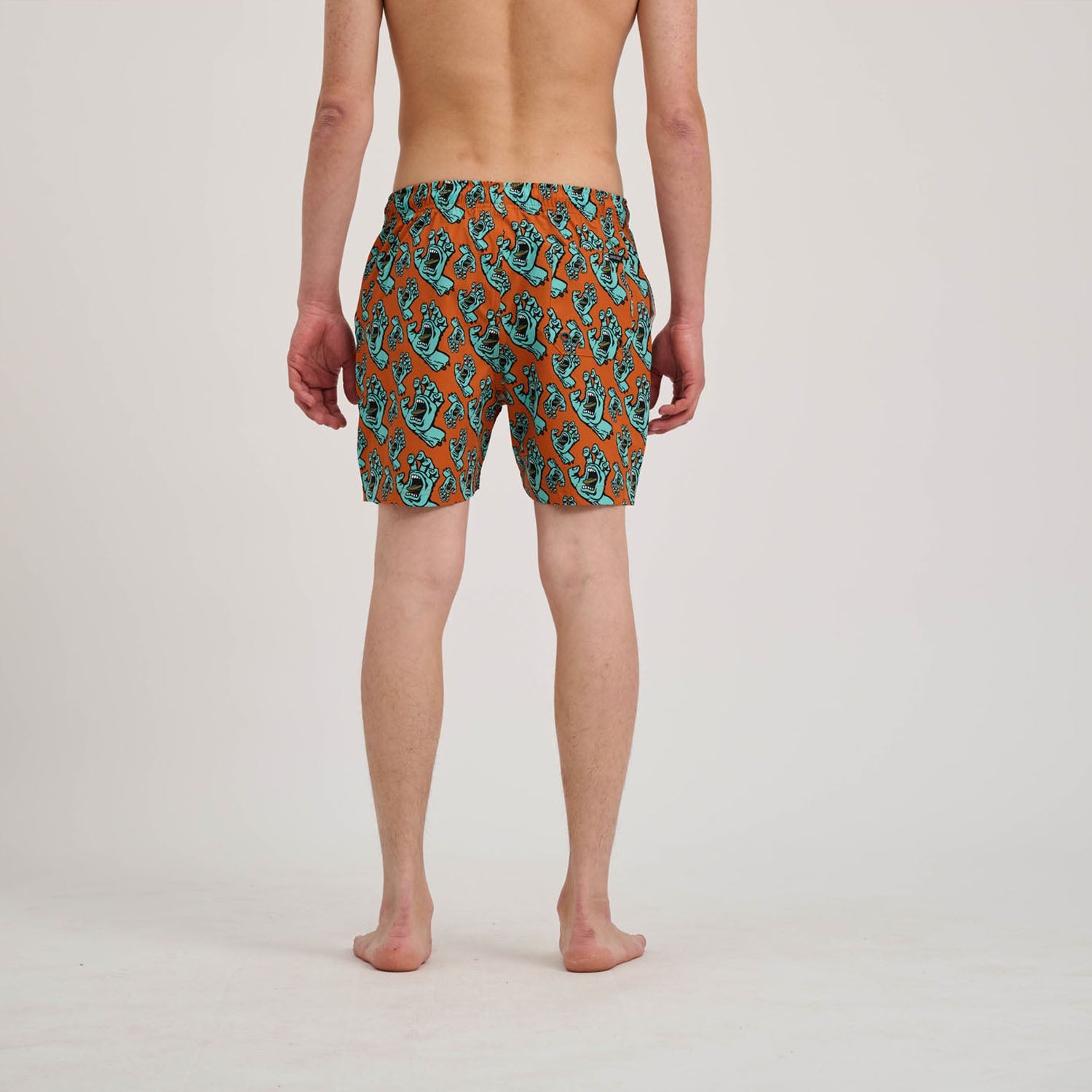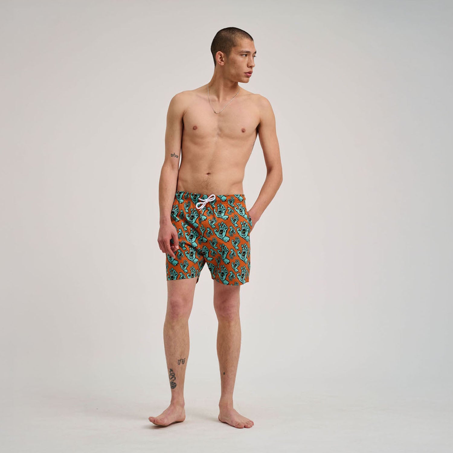 100% polyester, stretch microfibre, elasticated waist swimshort with 17" outseam, side pockets, back pocket, all over sublimated print and woven label branding