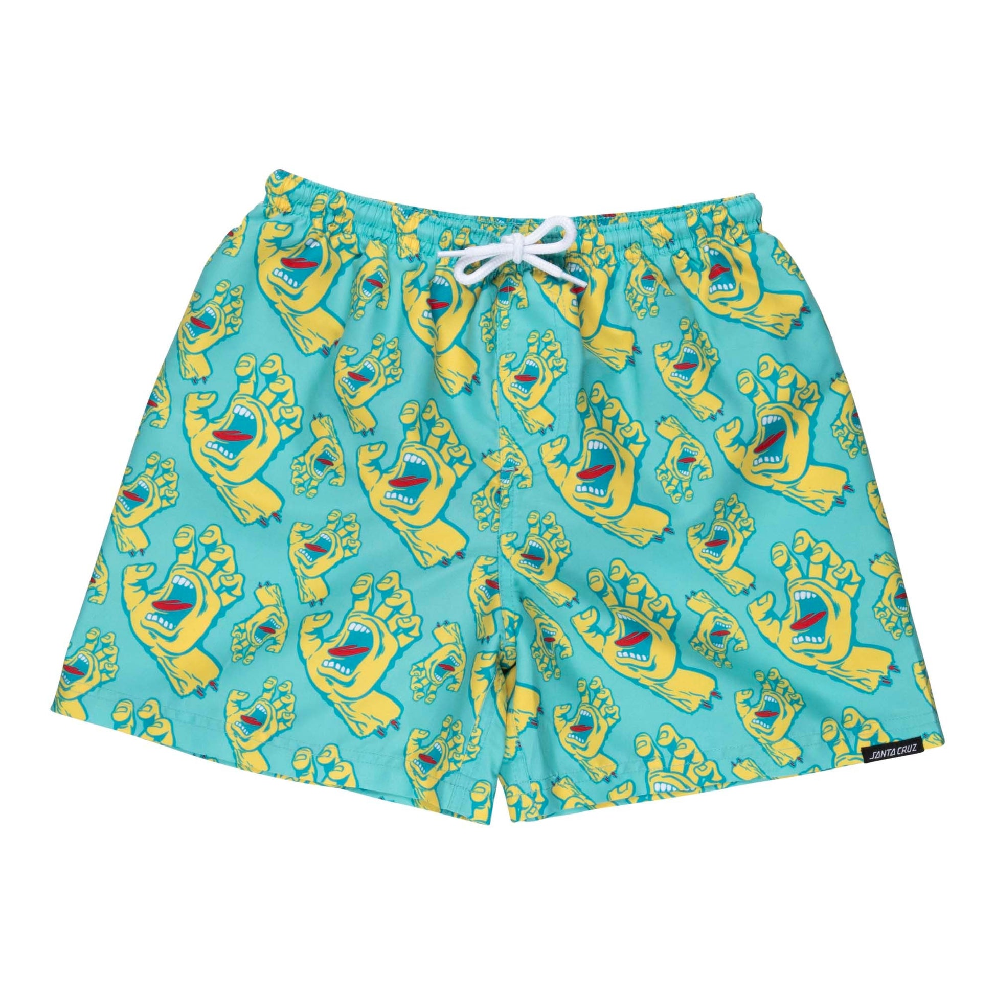 100% polyester, peach micro fibre, elasticated waist swimshort, with mesh brief lining, all over sublimated print and woven label branding