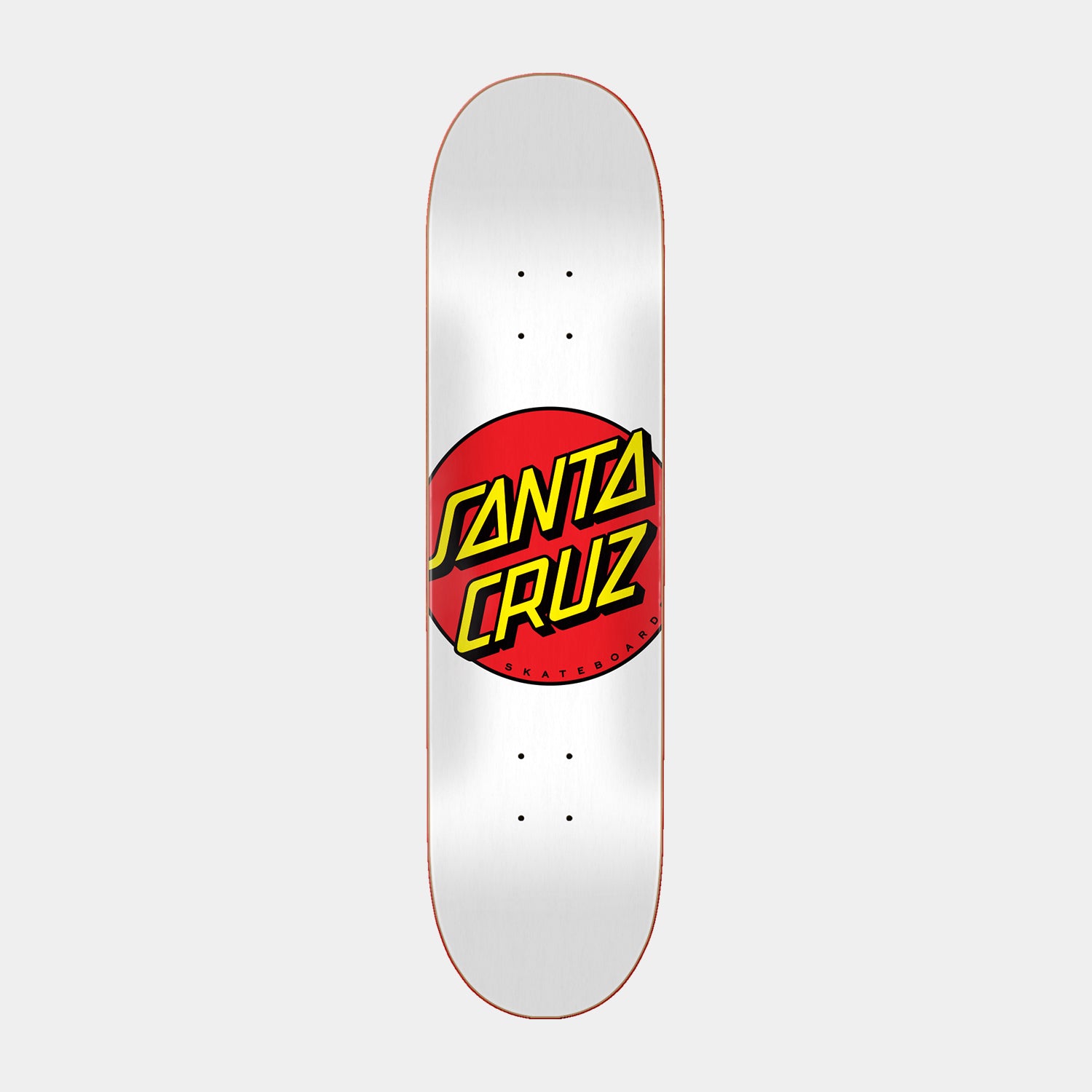 Santa Cruz Skateboards Classic Dot Series deck on new 3D concave. 3D concave features a medium depth concave with lower, continuous nose and tail kick, plus concave in the nose in tail that combine to create pockets to lock in your feet. 7 ply North American Maple pressed individually using epoxy making a strong, responsive deck with long lasting pop and consistent concave and kick, topped off with our signature matte finish.